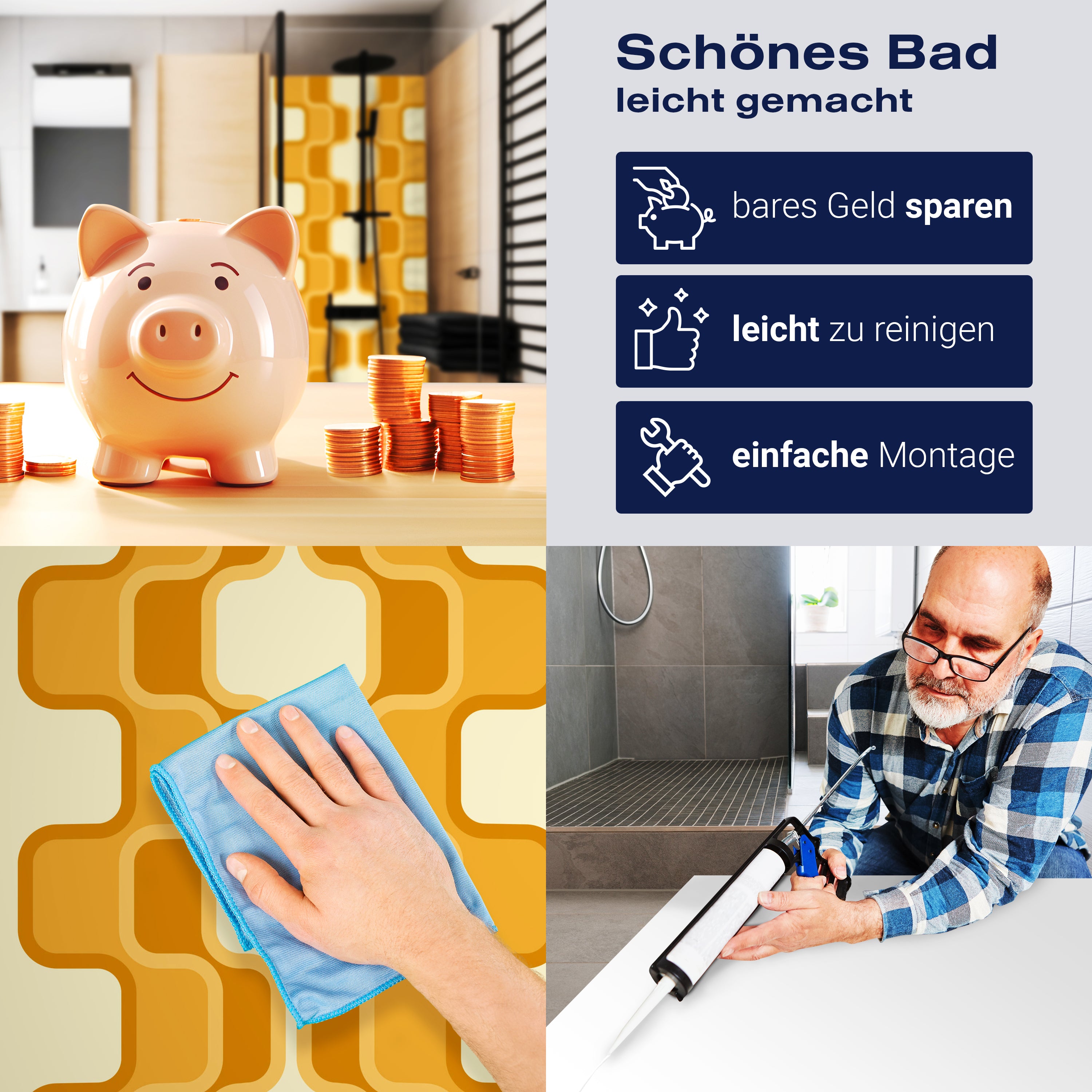 Bist du es leid, auf die langweiligen, schwer zu reinigende Fliesen in deiner Dusche zu schauen? Stell dir vor, wie dein Bad mit einer stilvollen, modernen Rückwand zum Leben erwacht! Unsere Duschwand 'Retromuster Sonnengelb Muster' ist nicht nur ein optisches Highlight, sondern auch praktisch und pflegeleicht.