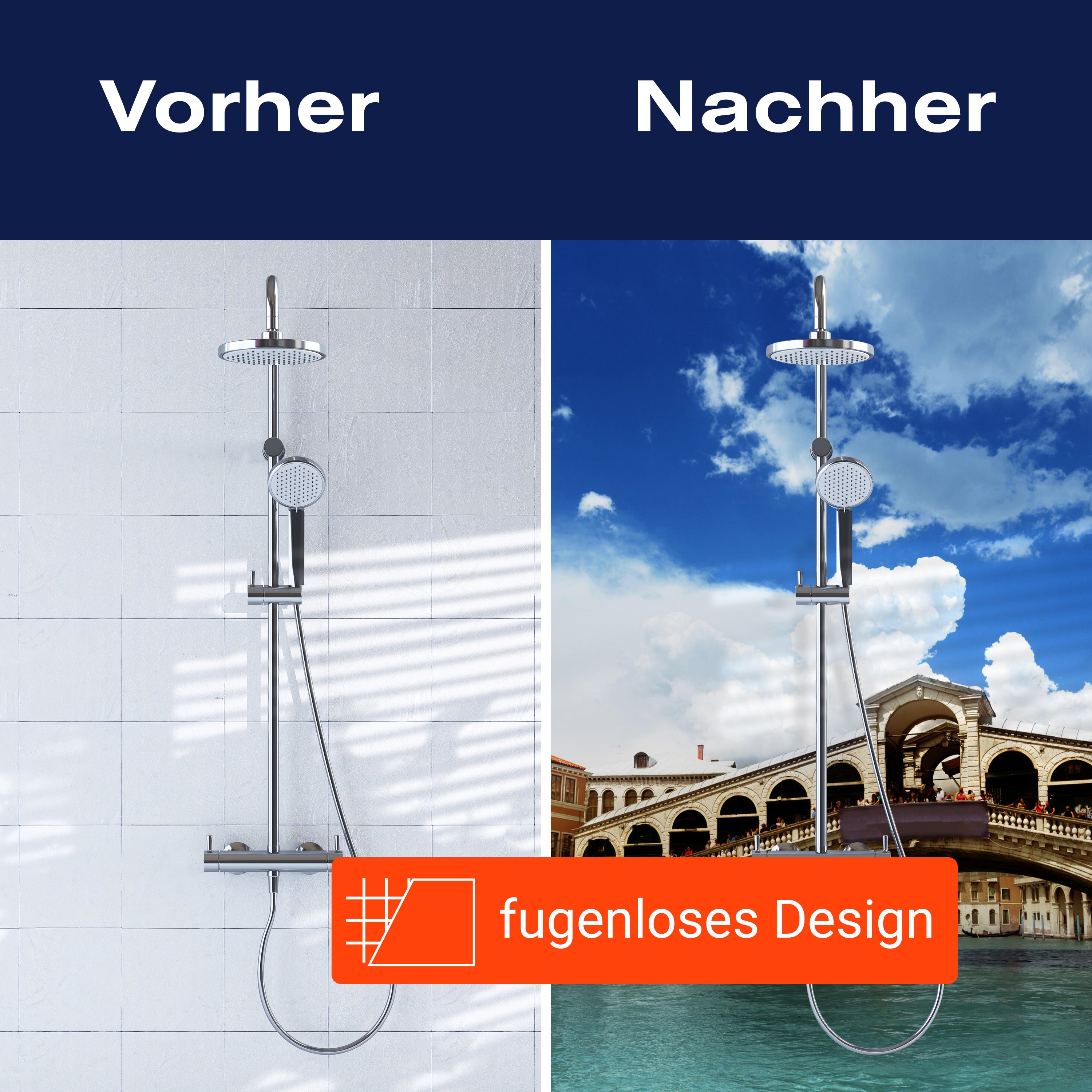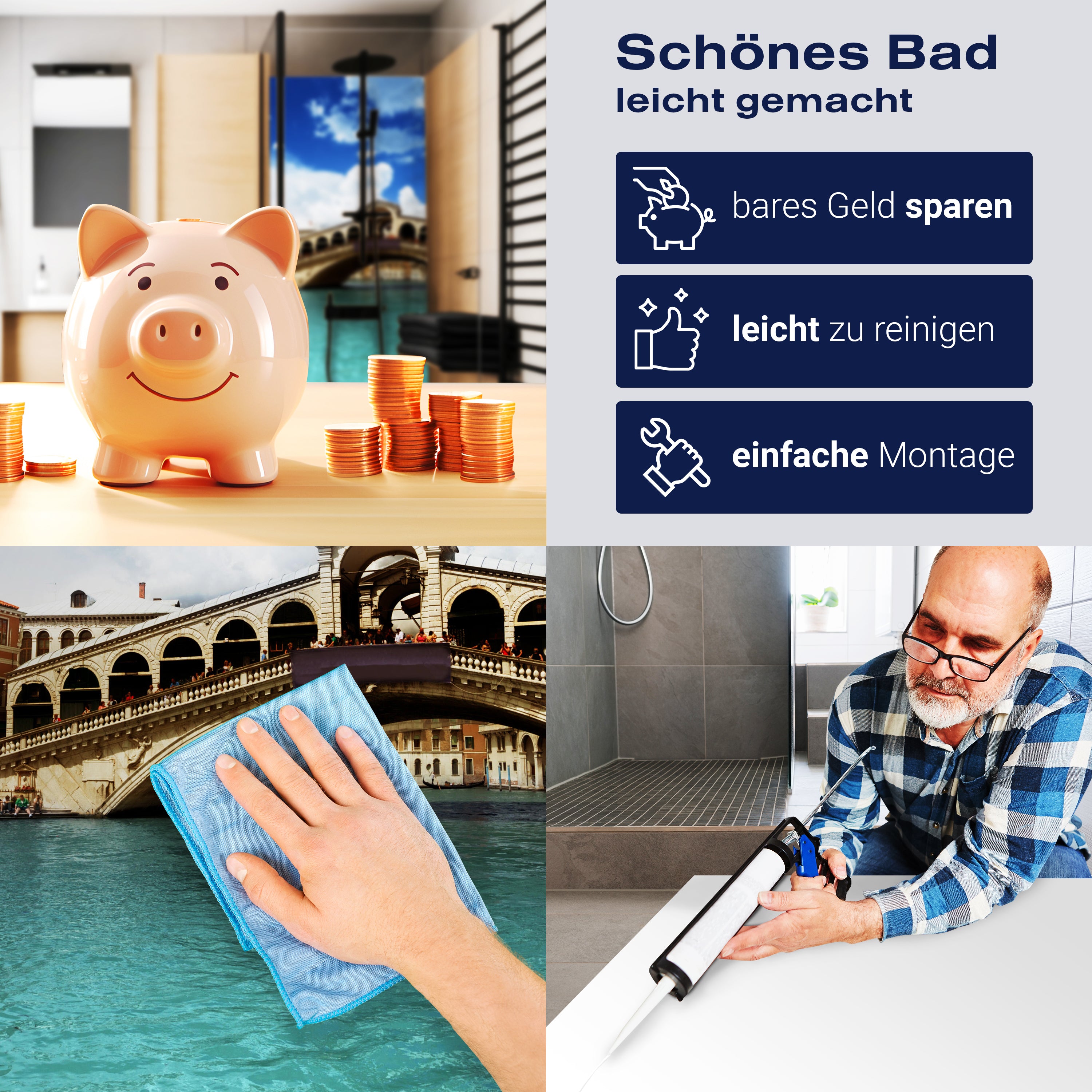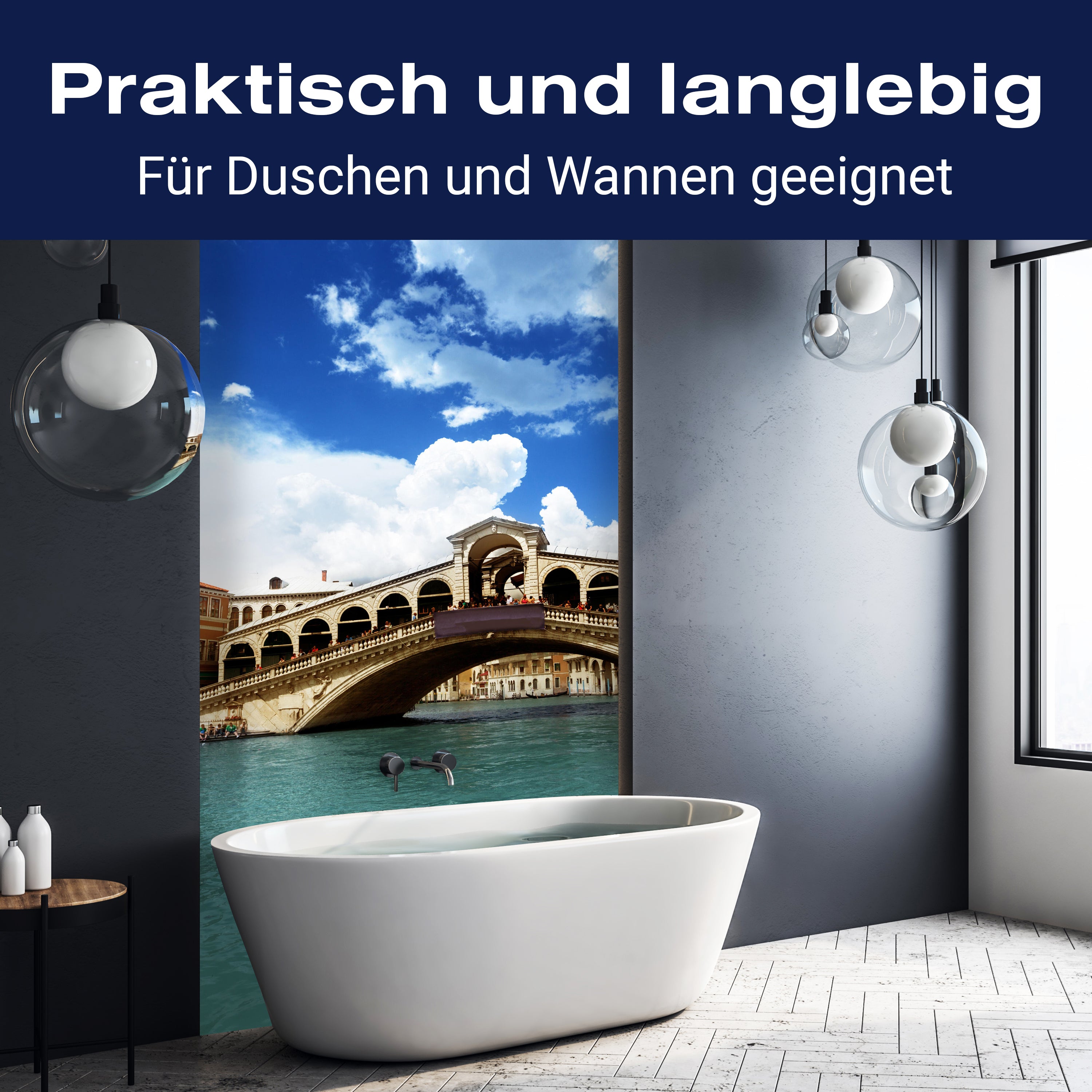 Bist du es leid, auf die langweiligen, schwer zu reinigende Fliesen in deiner Dusche zu schauen? Stell dir vor, wie dein Bad mit einer stilvollen, modernen Rückwand zum Leben erwacht! Unsere Duschwand 'Rialtobrücke Venedig' ist nicht nur ein optisches Highlight, sondern auch praktisch und pflegeleicht.