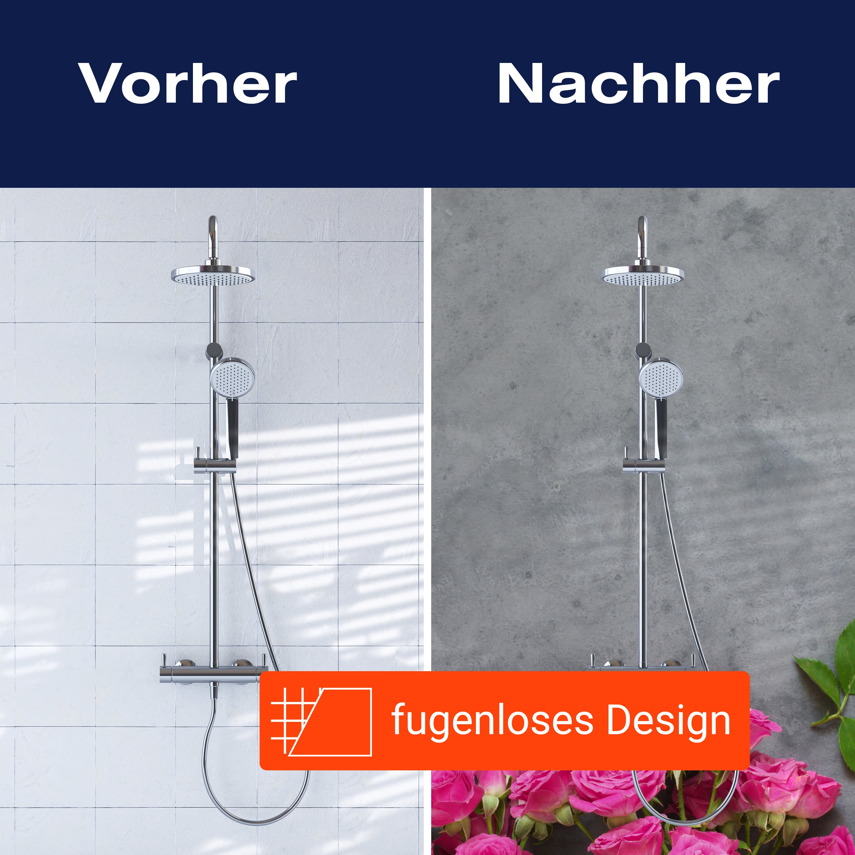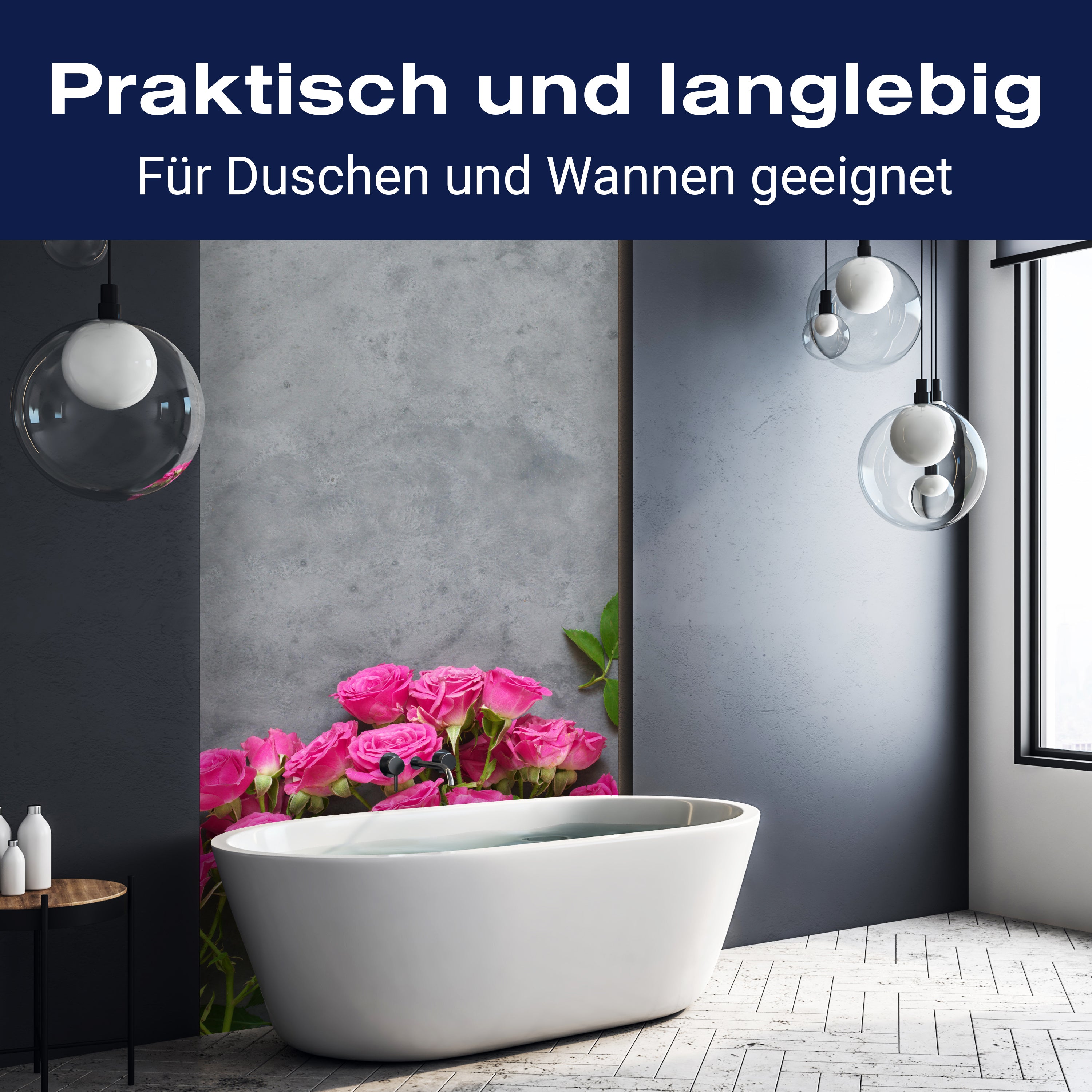Bist du es leid, auf die langweiligen, schwer zu reinigende Fliesen in deiner Dusche zu schauen? Stell dir vor, wie dein Bad mit einer stilvollen, modernen Rückwand zum Leben erwacht! Unsere Duschwand 'Rosa Rosen, Stein' ist nicht nur ein optisches Highlight, sondern auch praktisch und pflegeleicht.