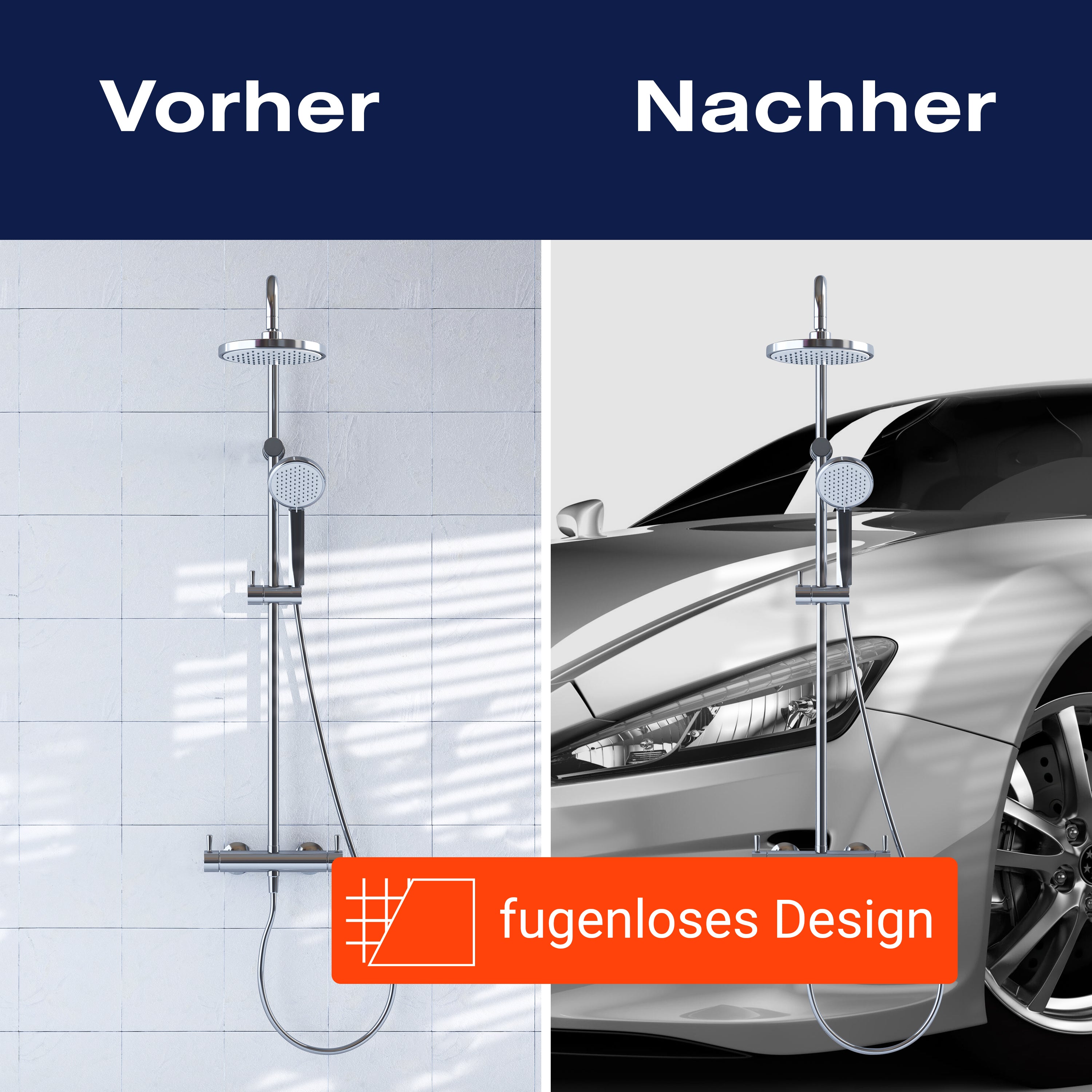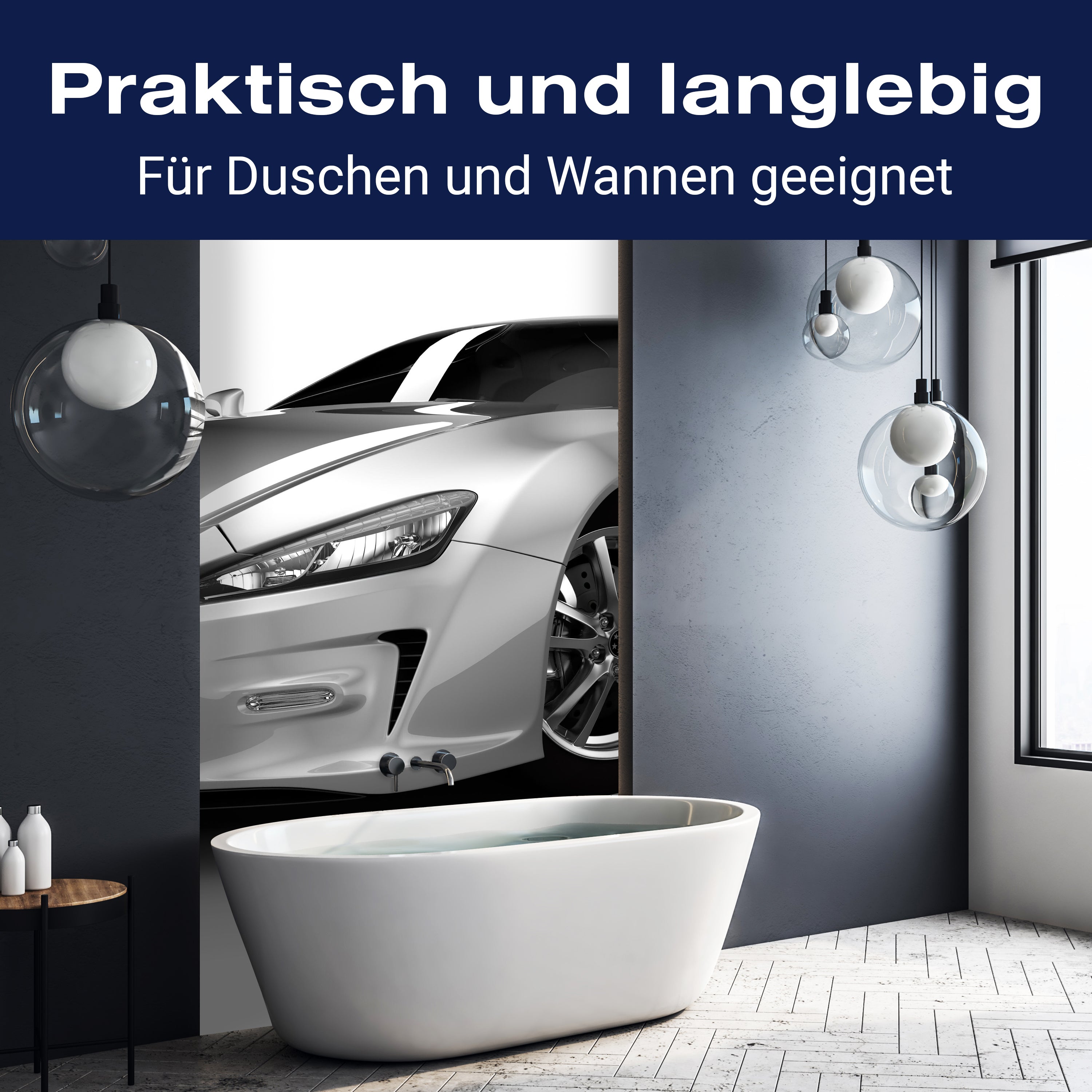 Bist du es leid, auf die langweiligen, schwer zu reinigende Fliesen in deiner Dusche zu schauen? Stell dir vor, wie dein Bad mit einer stilvollen, modernen Rückwand zum Leben erwacht! Unsere Duschwand 'Silberner Sportwagen' ist nicht nur ein optisches Highlight, sondern auch praktisch und pflegeleicht.