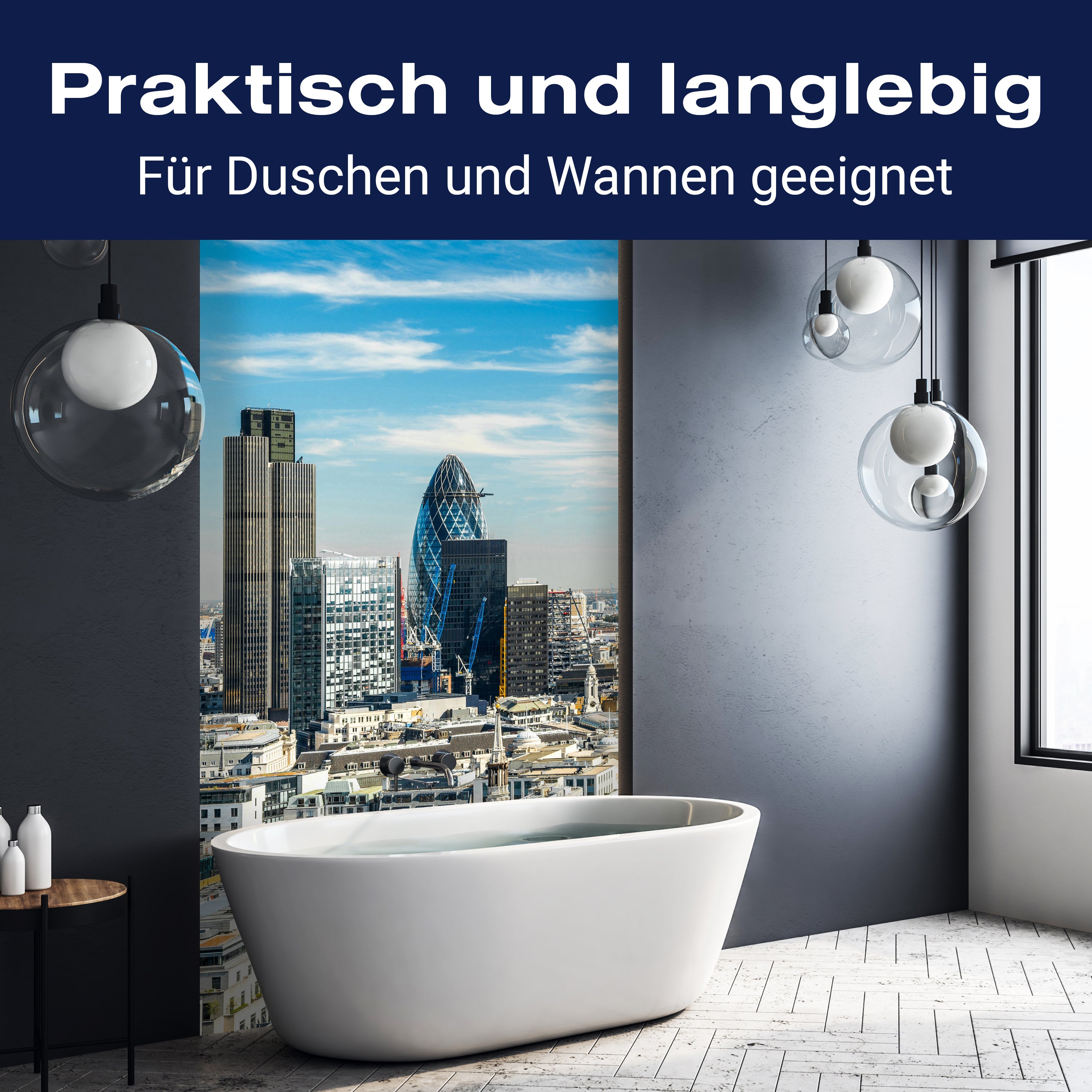 Bist du es leid, auf die langweiligen, schwer zu reinigende Fliesen in deiner Dusche zu schauen? Stell dir vor, wie dein Bad mit einer stilvollen, modernen Rückwand zum Leben erwacht! Unsere Duschwand 'Skyline London' ist nicht nur ein optisches Highlight, sondern auch praktisch und pflegeleicht.