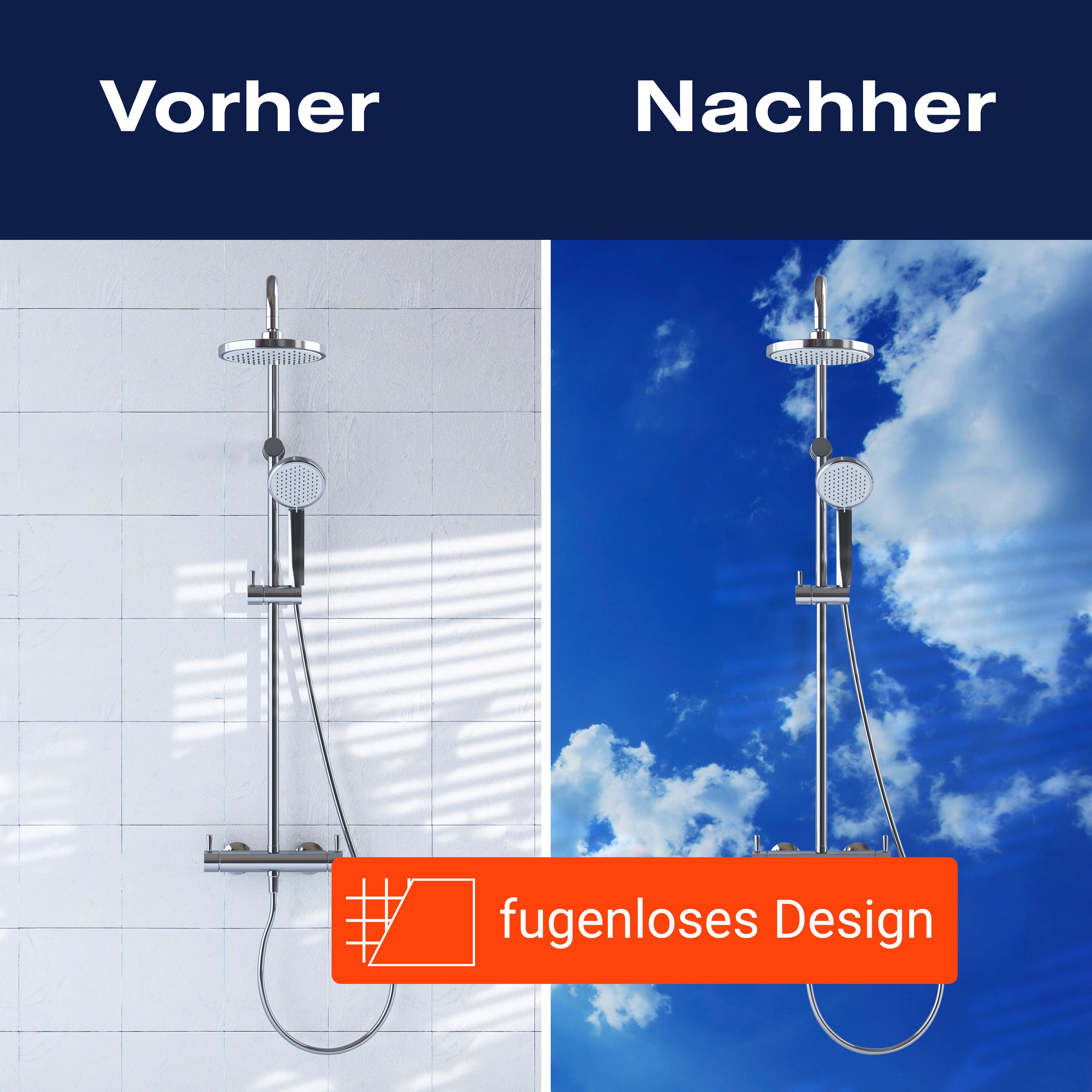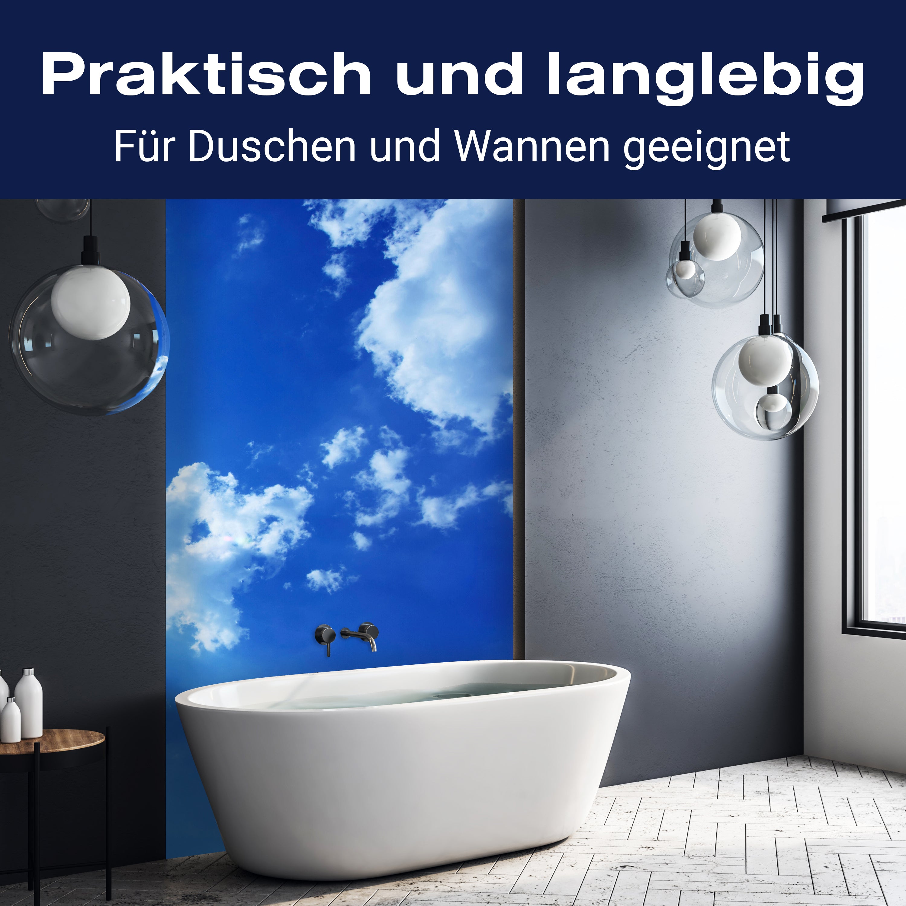 Bist du es leid, auf die langweiligen, schwer zu reinigende Fliesen in deiner Dusche zu schauen? Stell dir vor, wie dein Bad mit einer stilvollen, modernen Rückwand zum Leben erwacht! Unsere Duschwand 'Sommerhimmel' ist nicht nur ein optisches Highlight, sondern auch praktisch und pflegeleicht.