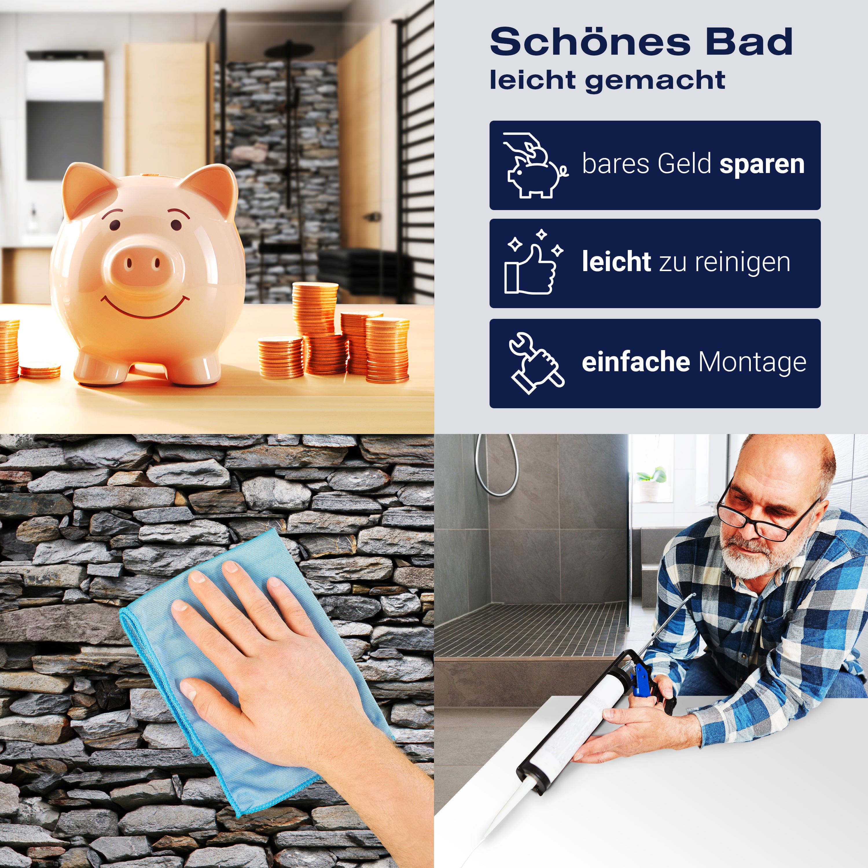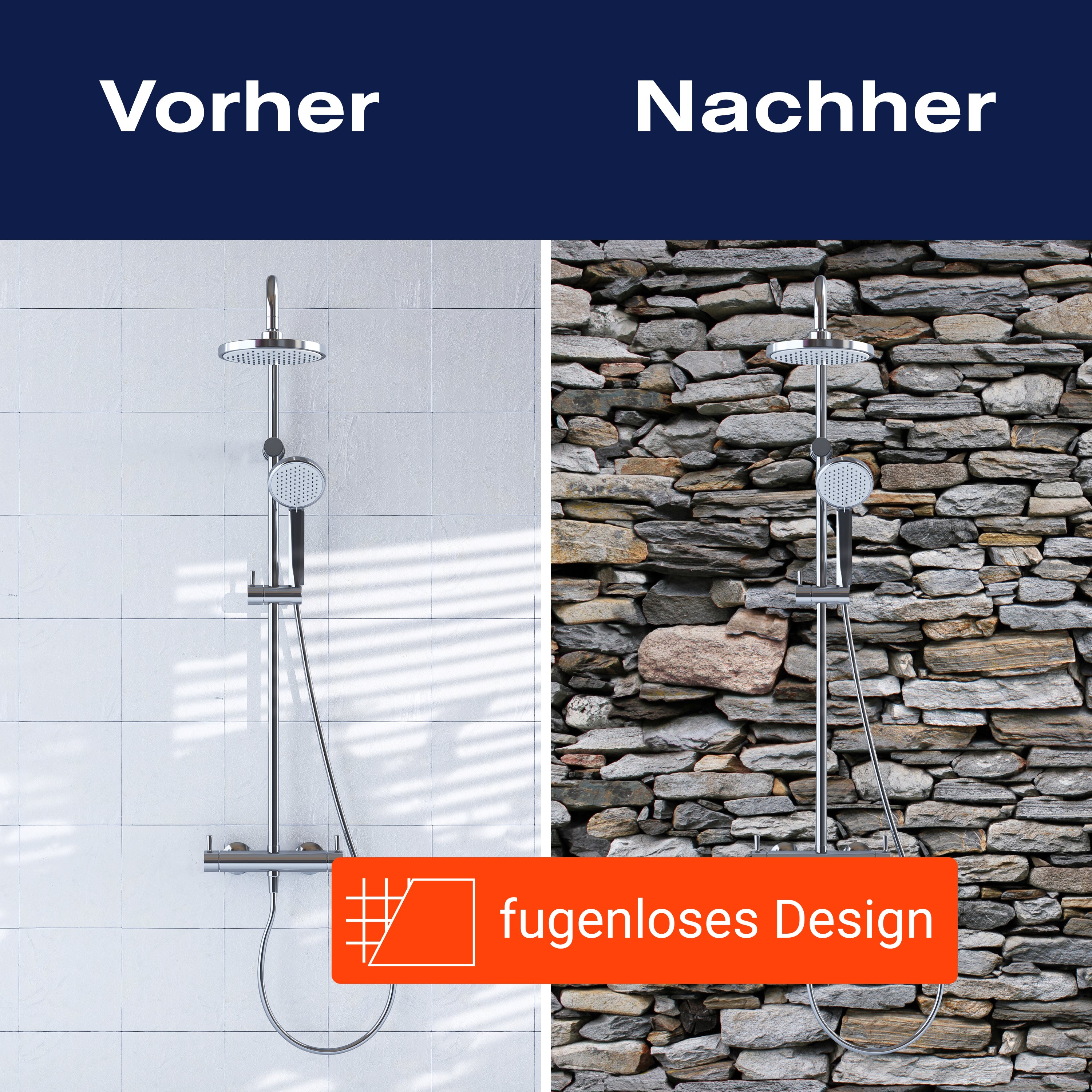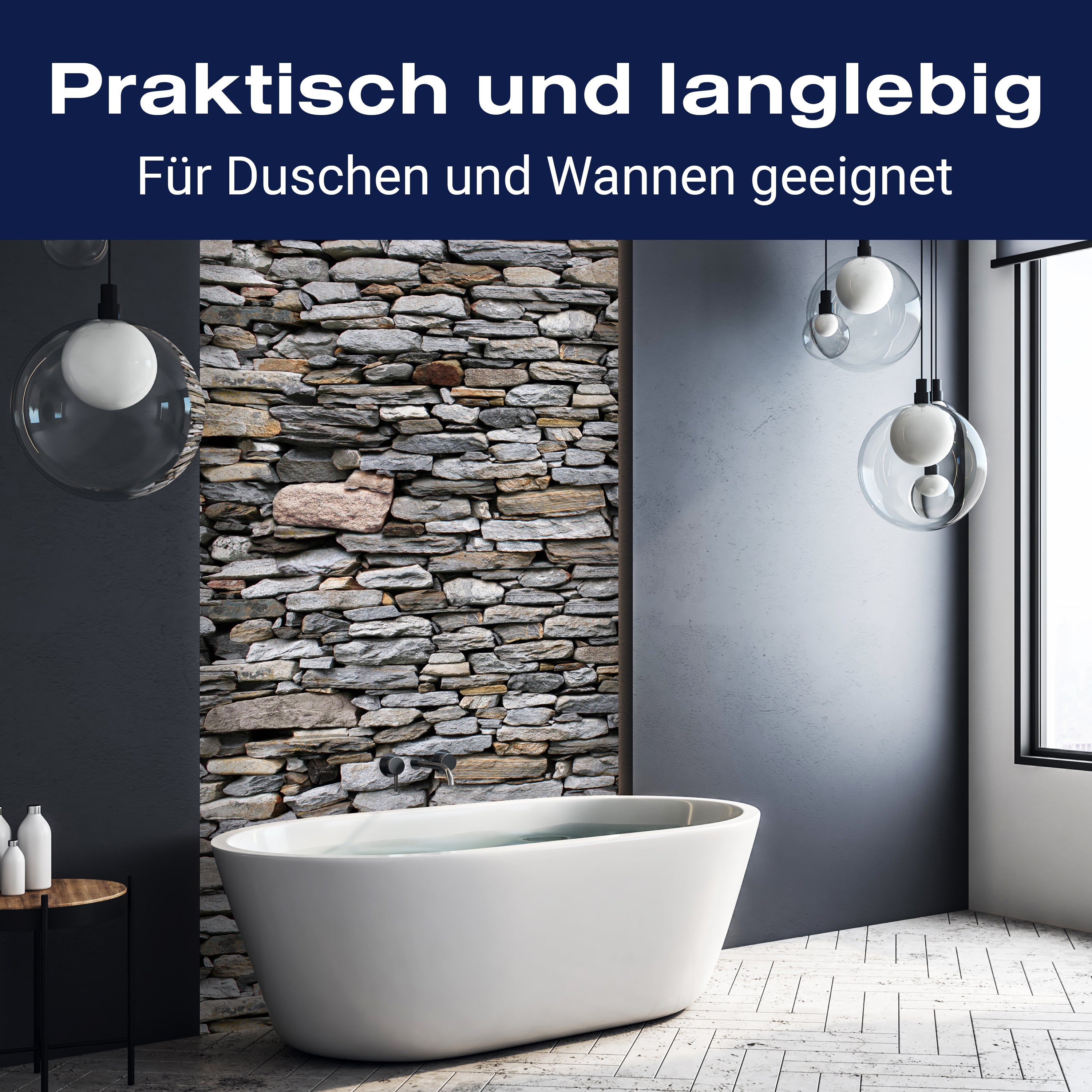 Bist du es leid, auf die langweiligen, schwer zu reinigende Fliesen in deiner Dusche zu schauen? Stell dir vor, wie dein Bad mit einer stilvollen, modernen Rückwand zum Leben erwacht! Unsere Duschwand 'Steinmauer Grau' ist nicht nur ein optisches Highlight, sondern auch praktisch und pflegeleicht.
