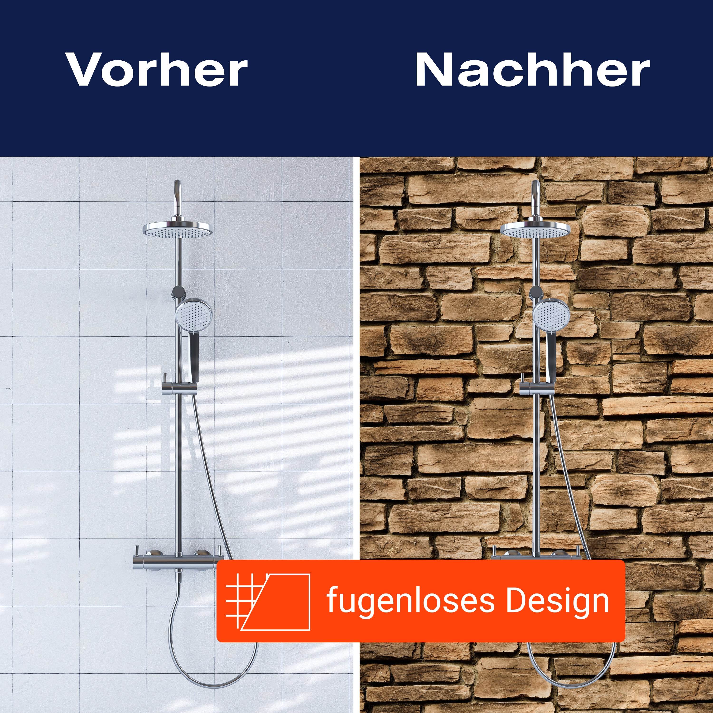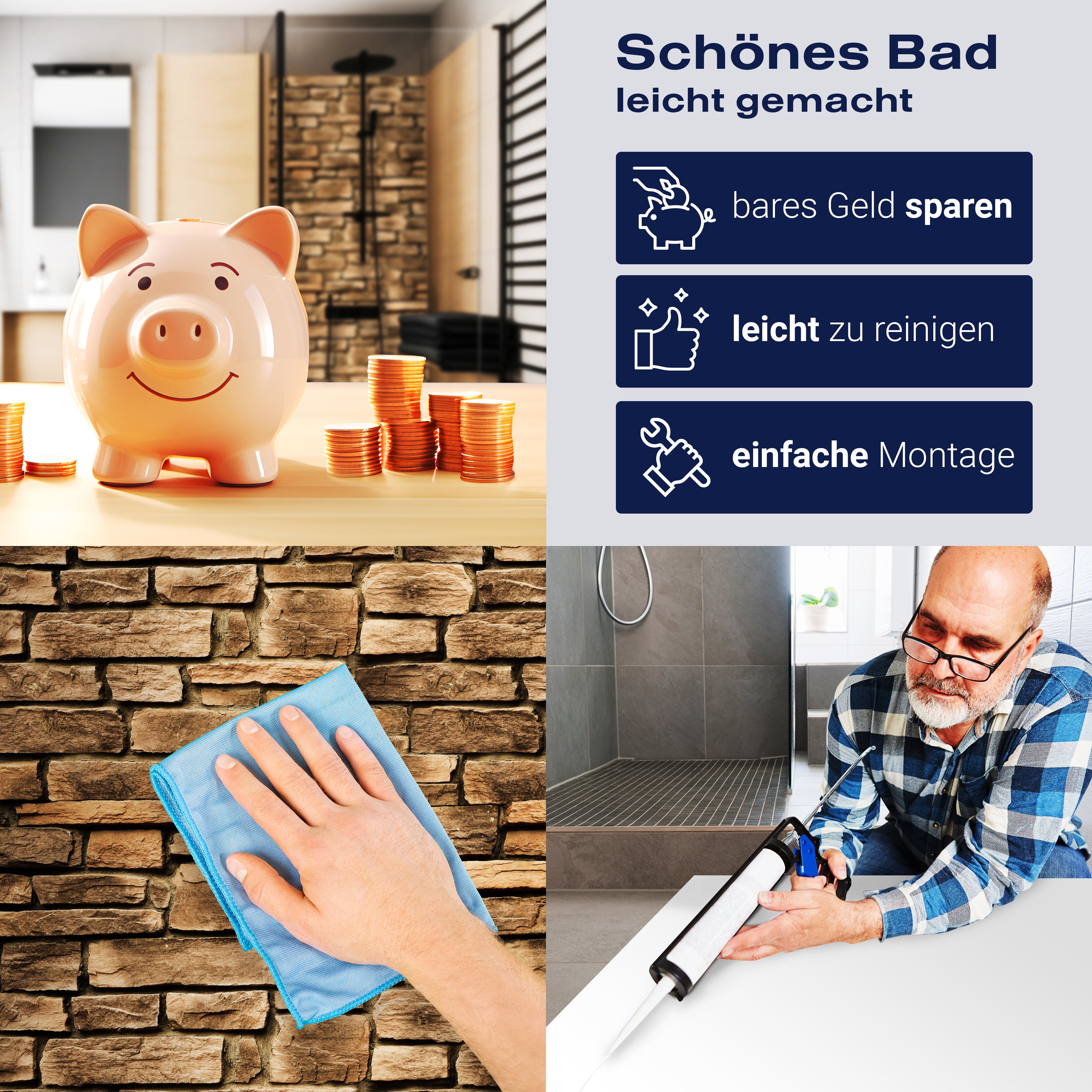 Bist du es leid, auf die langweiligen, schwer zu reinigende Fliesen in deiner Dusche zu schauen? Stell dir vor, wie dein Bad mit einer stilvollen, modernen Rückwand zum Leben erwacht! Unsere Duschwand 'Steinmauer' ist nicht nur ein optisches Highlight, sondern auch praktisch und pflegeleicht.