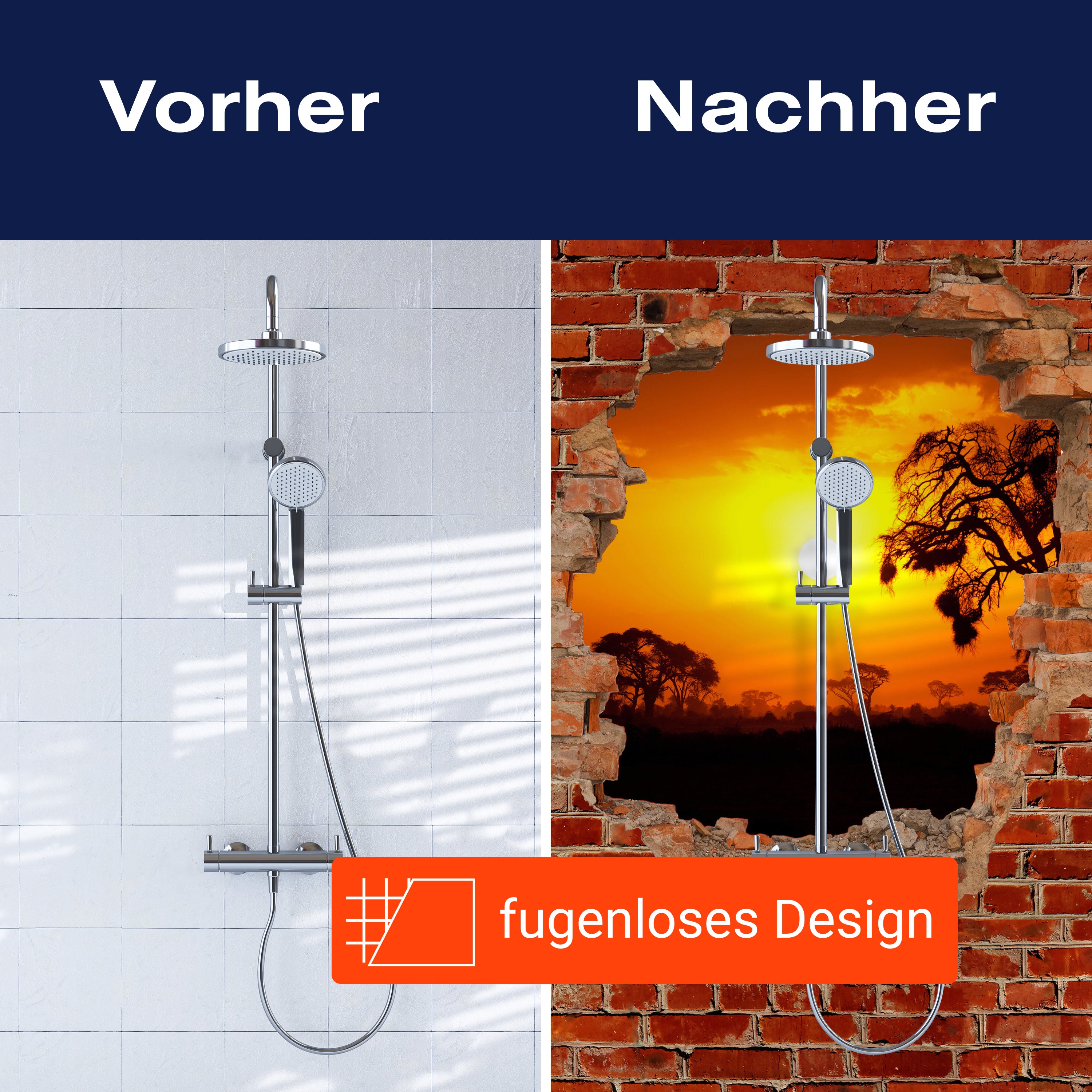 Bist du es leid, auf die langweiligen, schwer zu reinigende Fliesen in deiner Dusche zu schauen? Stell dir vor, wie dein Bad mit einer stilvollen, modernen Rückwand zum Leben erwacht! Unsere Duschwand 'Steppe Sonnenuntergang - Roter Backstein' ist nicht nur ein optisches Highlight, sondern auch praktisch und pflegeleicht.