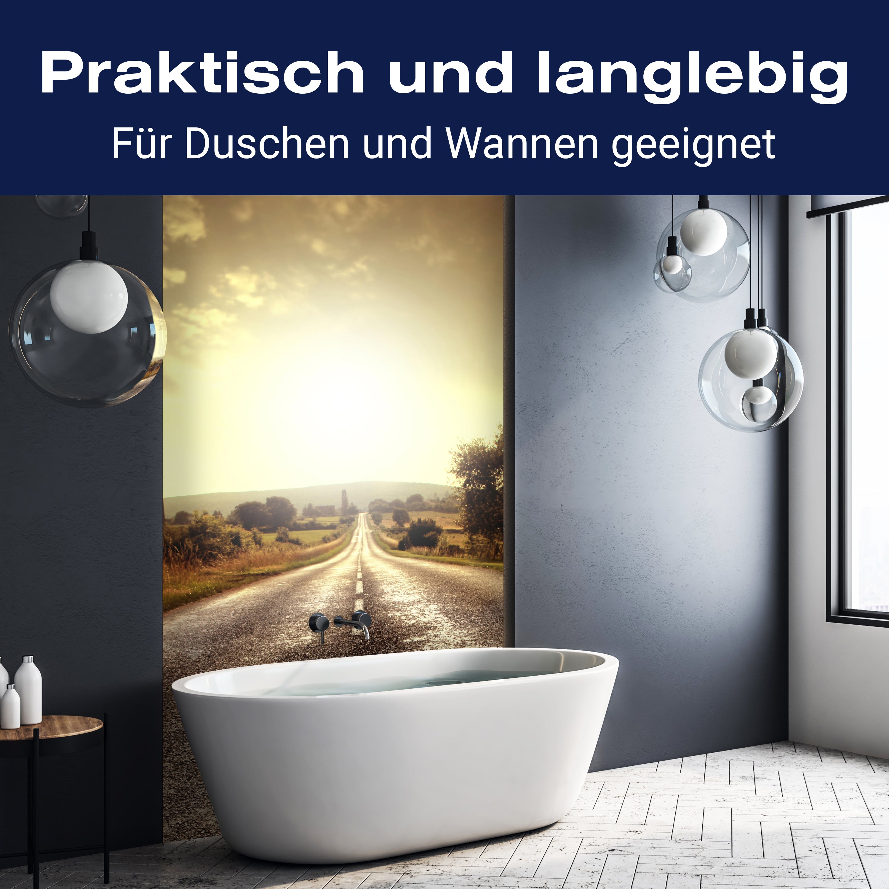 Vergiss die Tage, an denen Spritzer und Flecken deine Dusche ruiniert haben. Mit der Duschrückwand 'Strasse' gehören solche Sorgen der Vergangenheit an. Das hochwertige Material sorgt dafür, dass deine Dusche gegen Wasser und andere alltägliche Missgeschicke resistent ist. Ein einfacher Wisch, und sie sieht aus wie neu – ohne den Einsatz von aggressiven Reinigungsmitteln.