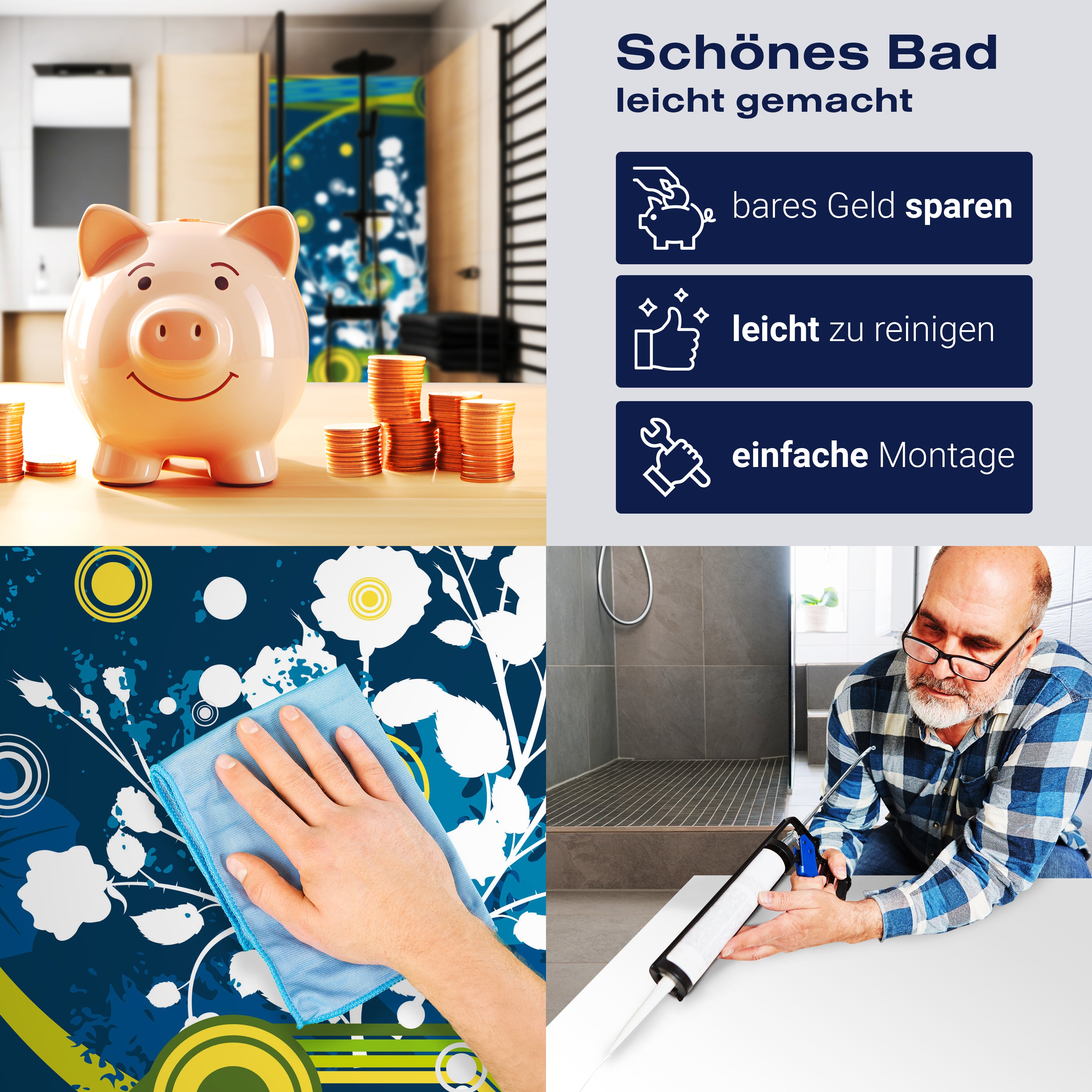 Bist du es leid, auf die langweiligen, schwer zu reinigende Fliesen in deiner Dusche zu schauen? Stell dir vor, wie dein Bad mit einer stilvollen, modernen Rückwand zum Leben erwacht! Unsere Duschwand 'Tatjana Floral' ist nicht nur ein optisches Highlight, sondern auch praktisch und pflegeleicht.