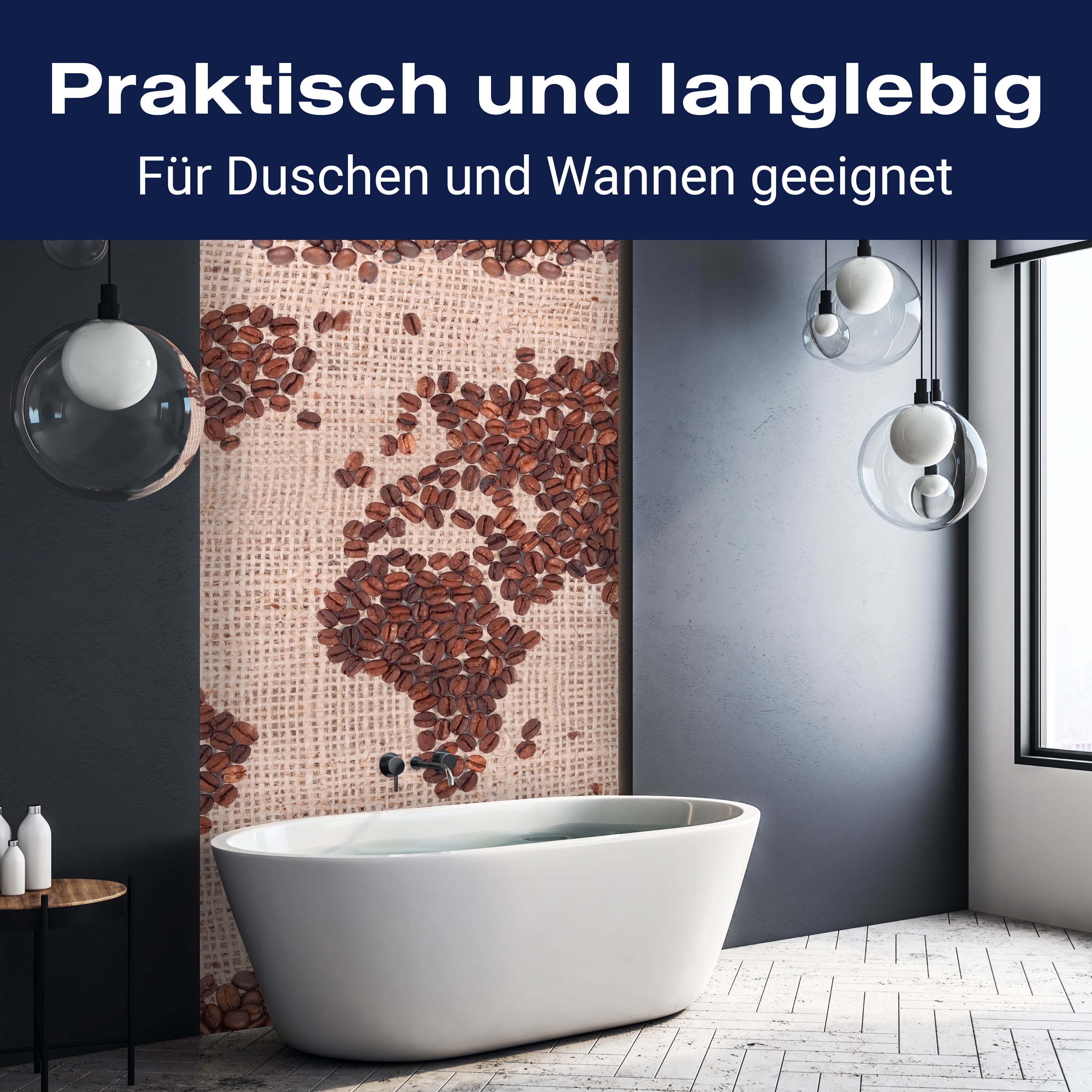 Bist du es leid, auf die langweiligen, schwer zu reinigende Fliesen in deiner Dusche zu schauen? Stell dir vor, wie dein Bad mit einer stilvollen, modernen Rückwand zum Leben erwacht! Unsere Duschwand 'Weltkarte Kaffee' ist nicht nur ein optisches Highlight, sondern auch praktisch und pflegeleicht.