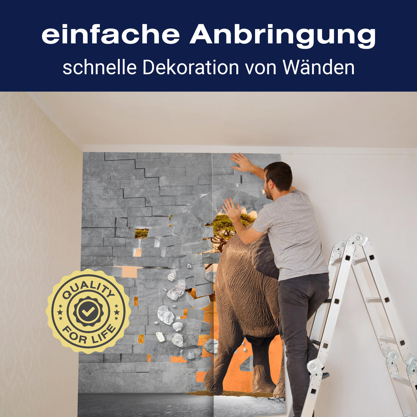 Träumst Du davon, Deine Wände in eine beeindruckende Kunstgalerie zu verwandeln? Mit unserer hochwertigen Fototapete 3D Optik Elefant Wanddurchbruch M6617 ist es jetzt möglich! Jede Wand wird zu einer Leinwand Deiner Kreativität.