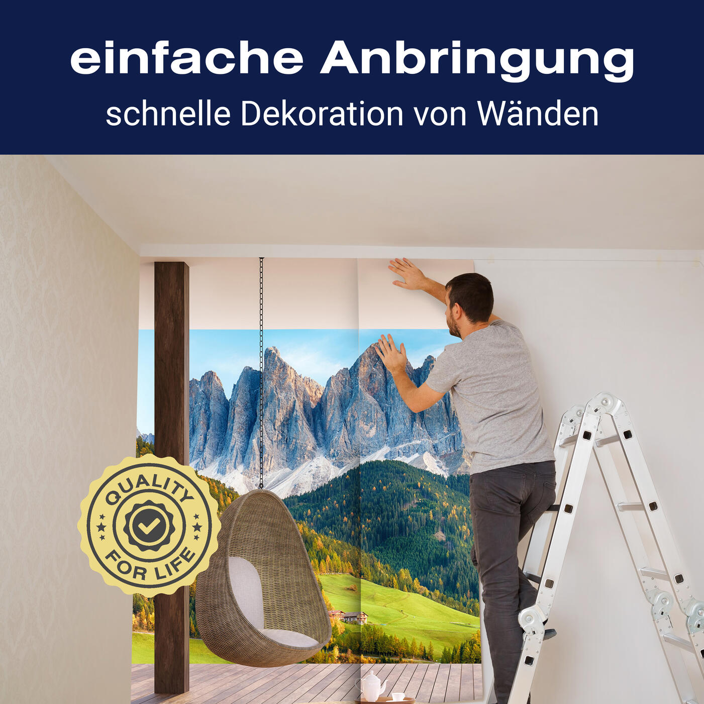 Unsere Fototapeten sind so konzipiert, dass sie ohne großen Aufwand angebracht werden können. Ob selbstklebend oder traditionell, die Anbringung ist einfach und schnell.