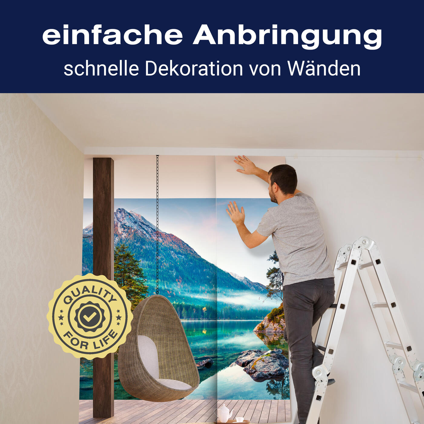 Unsere Fototapeten sind so konzipiert, dass sie ohne großen Aufwand angebracht werden können. Ob selbstklebend oder traditionell, die Anbringung ist einfach und schnell.