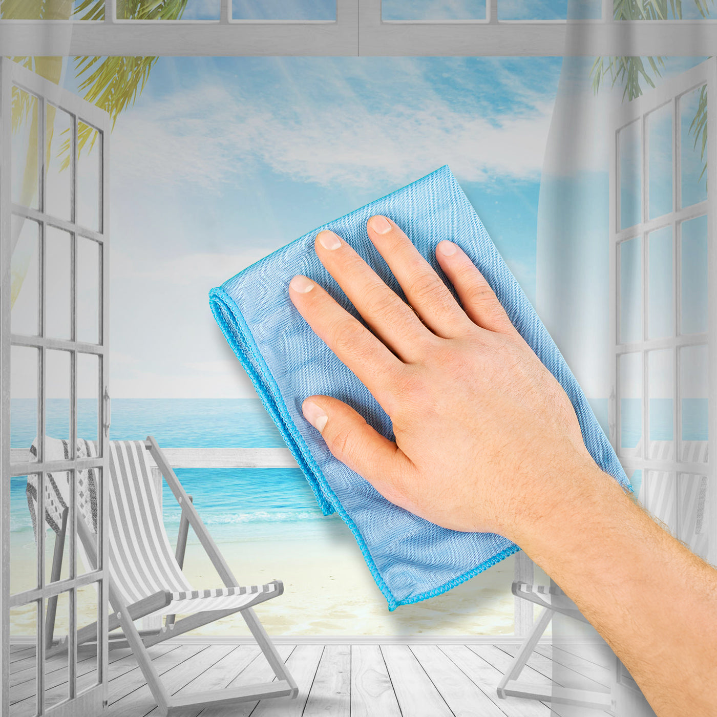 - Reinige eventuelle Verschmutzungen oder Kleberreste sofort mit einem feuchten Schwamm oder Tuch.