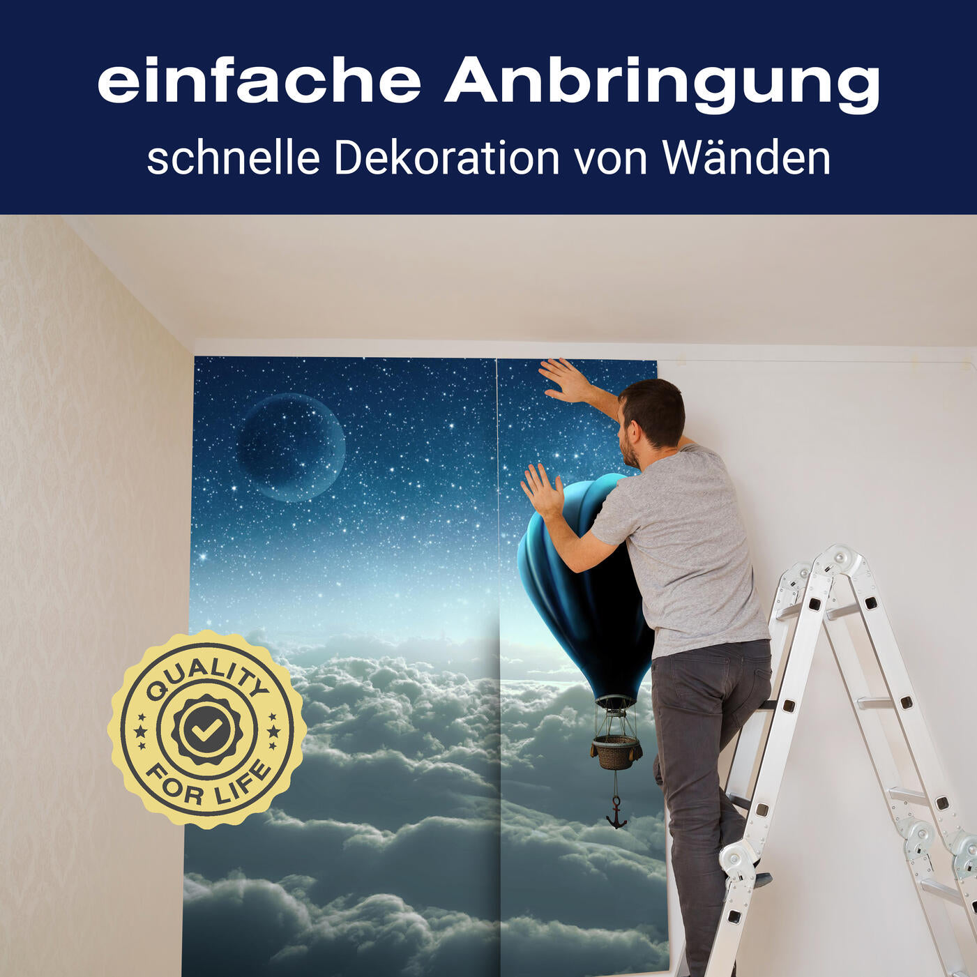 Träumst Du davon, Deine Wände in eine beeindruckende Kunstgalerie zu verwandeln? Mit unserer hochwertigen Fototapete Ballon Wolken Sterne M1140 ist es jetzt möglich! Jede Wand wird zu einer Leinwand Deiner Kreativität.