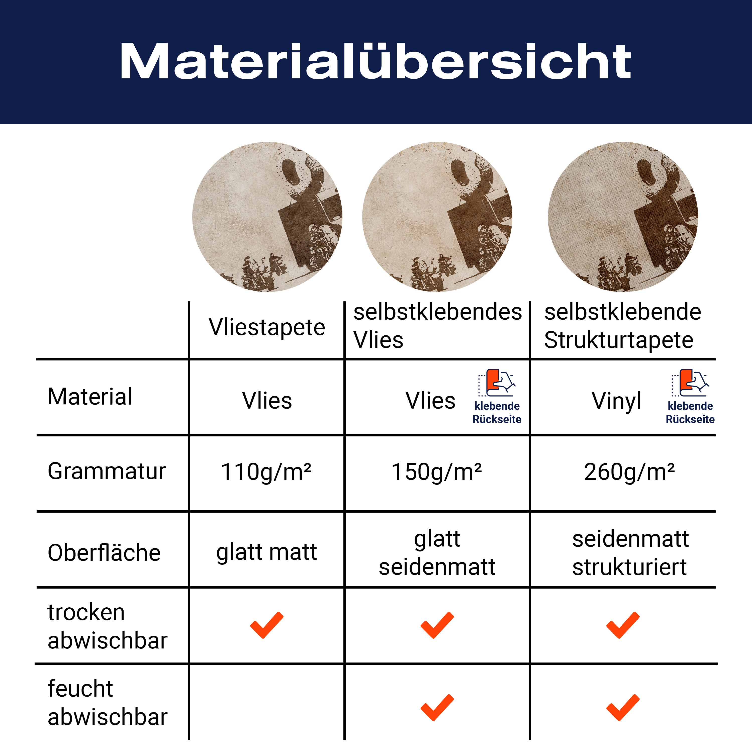 Die Fototapeten sind pflegeleicht und können mit einem feuchten Tuch gereinigt werden, ohne die Farbbrillanz zu beeinträchtigen.