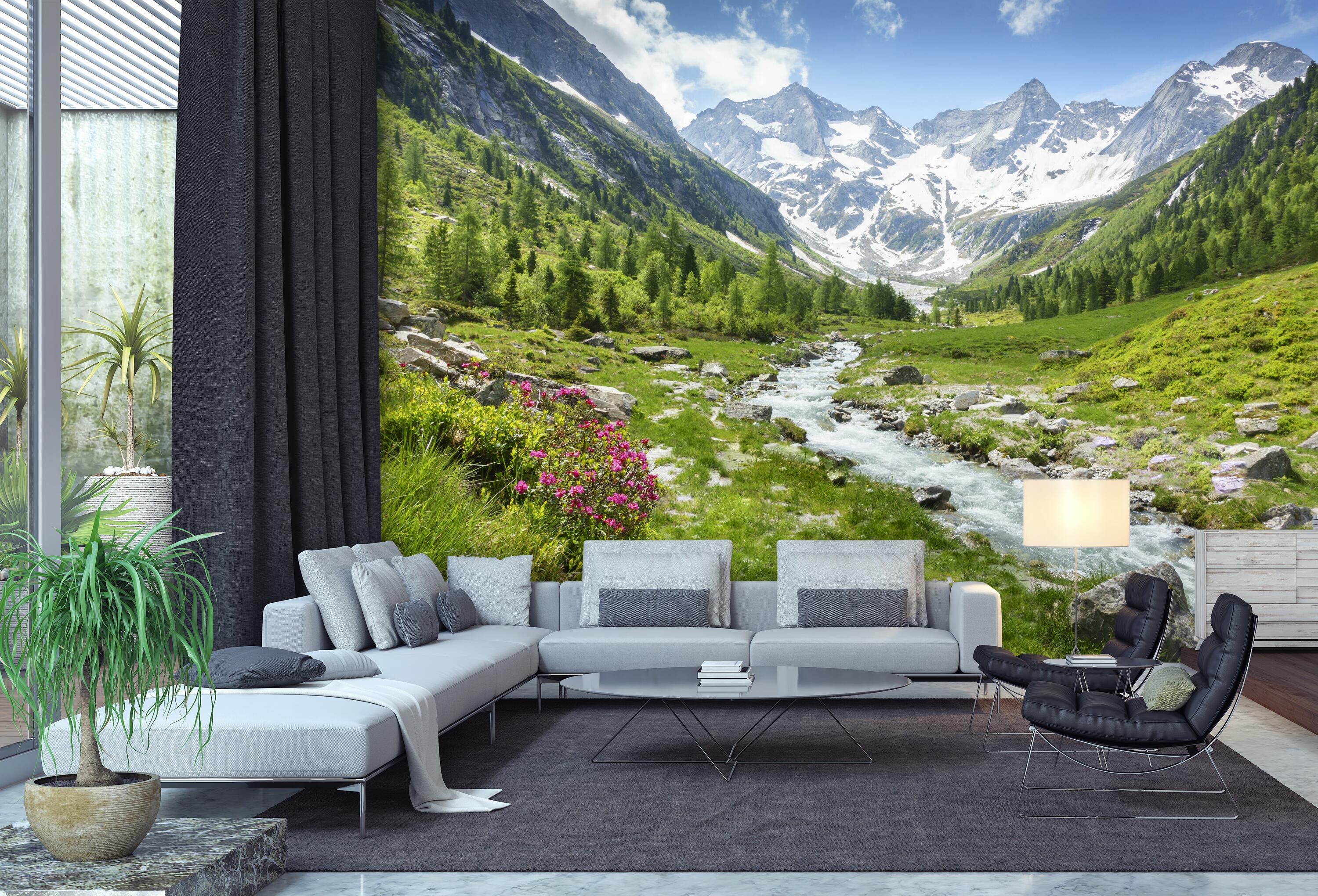 Träumst Du davon, Deine Wände in eine beeindruckende Kunstgalerie zu verwandeln? Mit unserer hochwertigen Fototapete Berge Alpen Wiese Bach M6751 ist es jetzt möglich! Jede Wand wird zu einer Leinwand Deiner Kreativität.