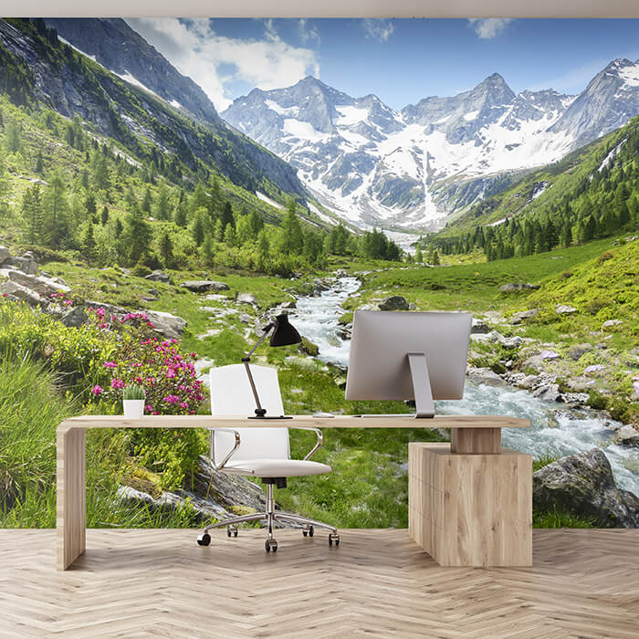 Fototapete Berge Alpen Wiese Bach M6751