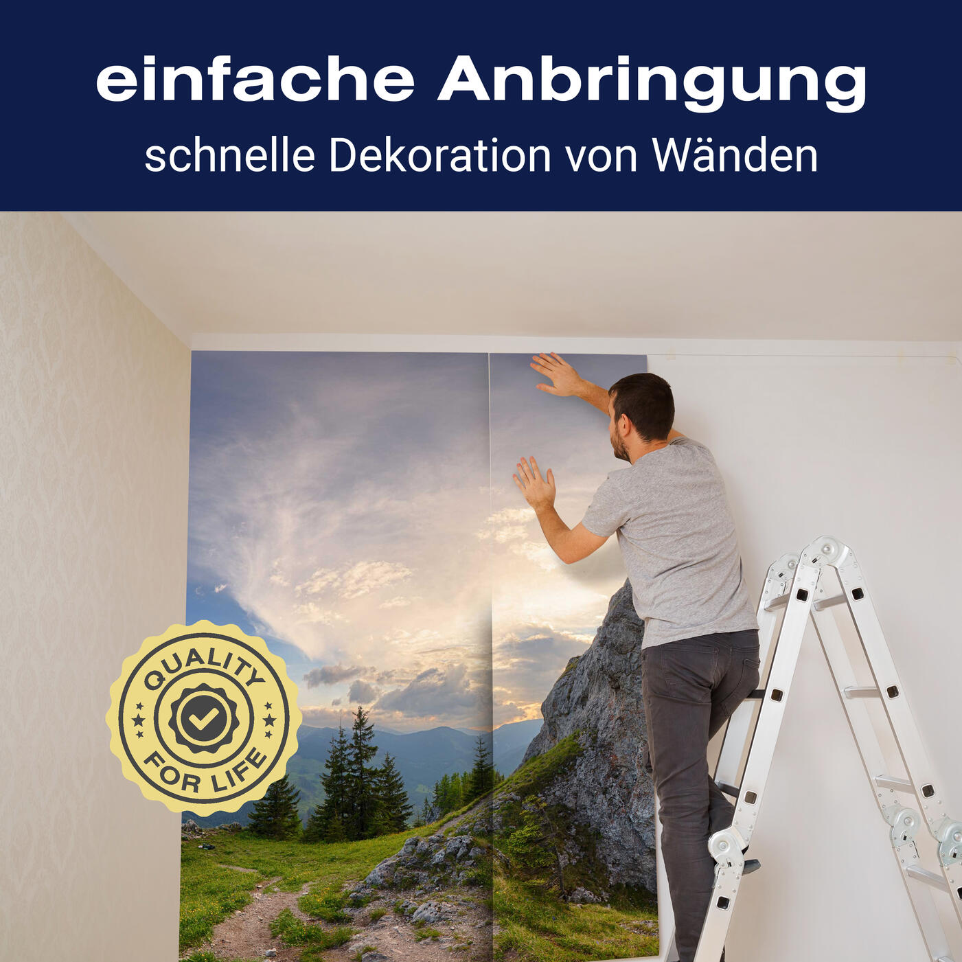 Unsere Fototapeten sind so konzipiert, dass sie ohne großen Aufwand angebracht werden können. Ob selbstklebend oder traditionell, die Anbringung ist einfach und schnell.
