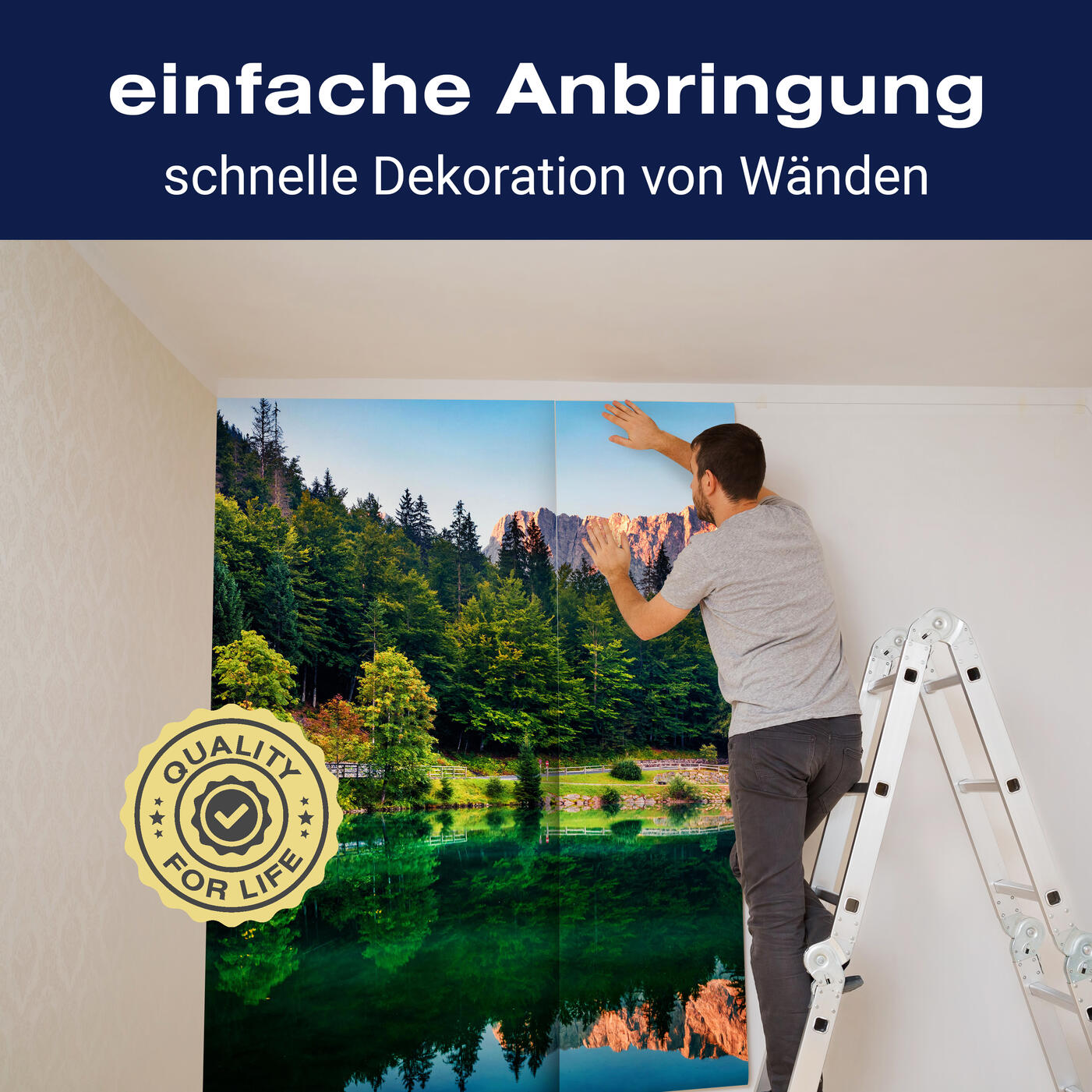 Unsere Fototapeten sind so konzipiert, dass sie ohne großen Aufwand angebracht werden können. Ob selbstklebend oder traditionell, die Anbringung ist einfach und schnell.