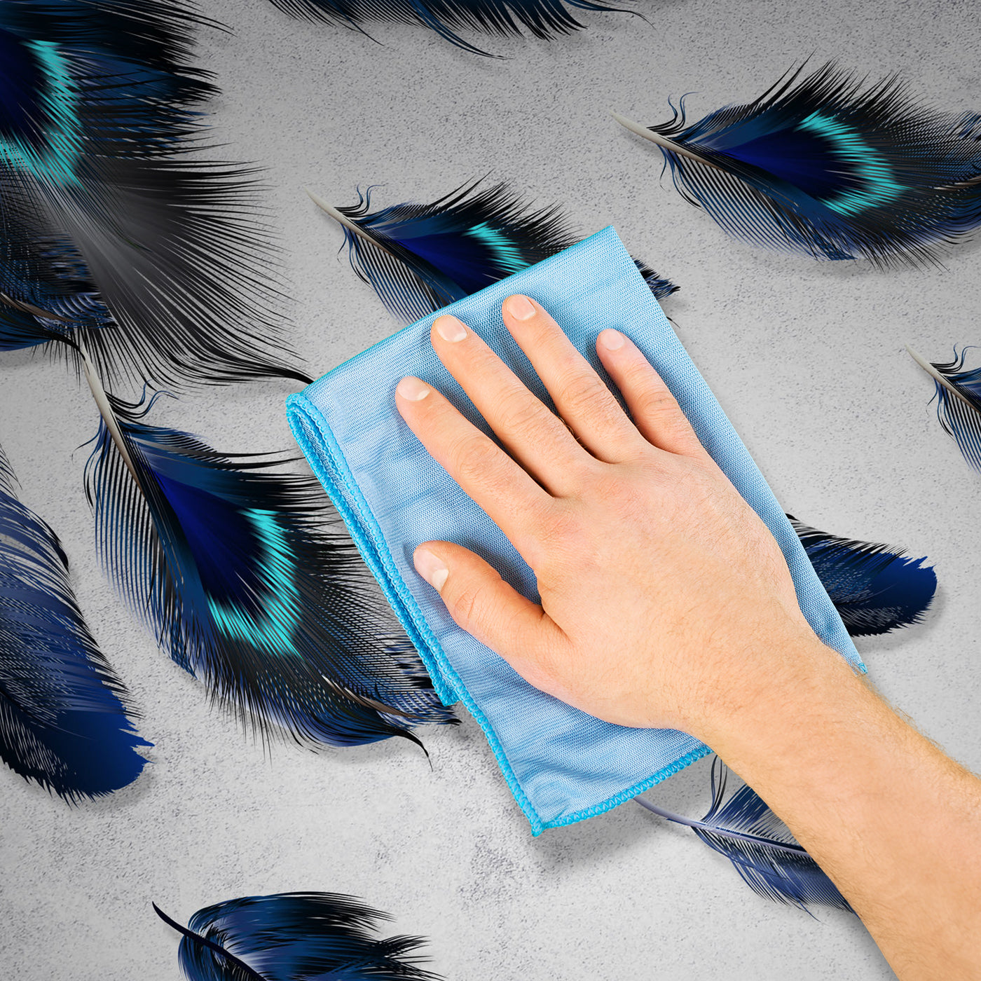 - Reinige eventuelle Verschmutzungen oder Kleberreste sofort mit einem feuchten Schwamm oder Tuch.