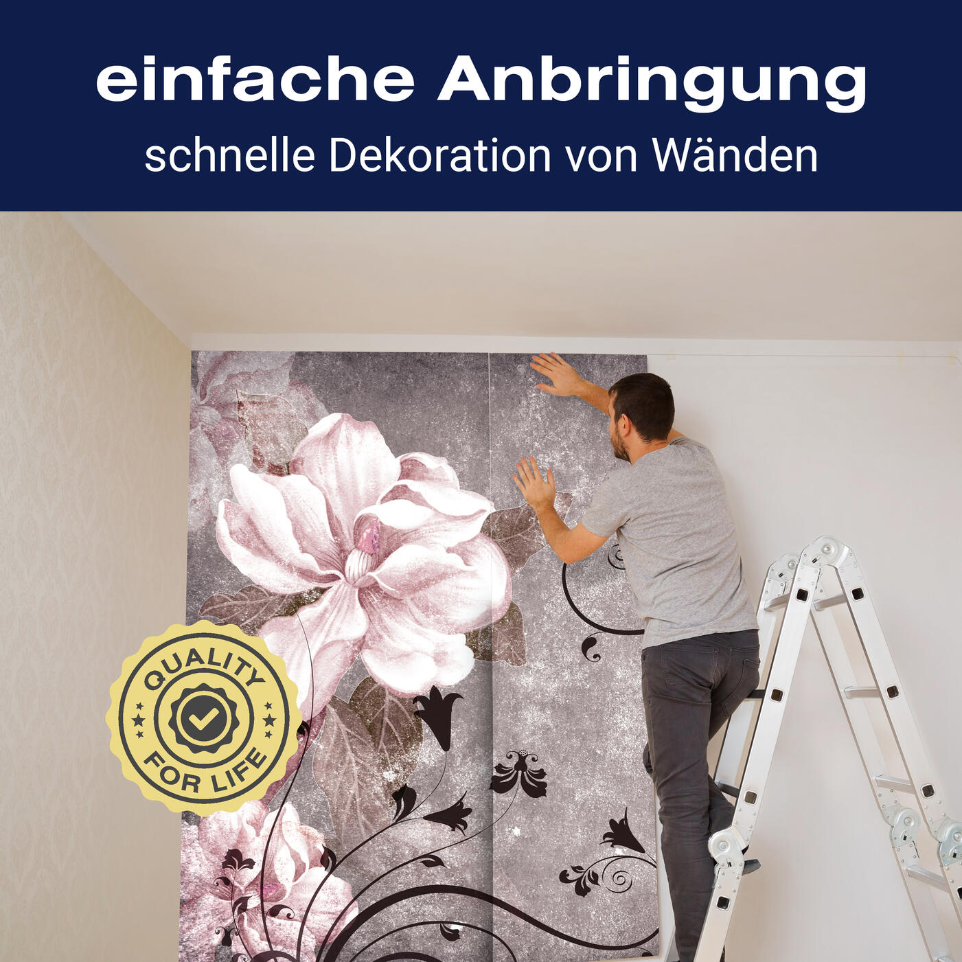 Unsere Fototapeten sind so konzipiert, dass sie ohne großen Aufwand angebracht werden können. Ob selbstklebend oder traditionell, die Anbringung ist einfach und schnell.