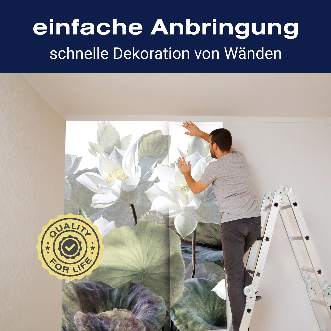 Unsere Fototapeten sind so konzipiert, dass sie ohne großen Aufwand angebracht werden können. Ob selbstklebend oder traditionell, die Anbringung ist einfach und schnell.