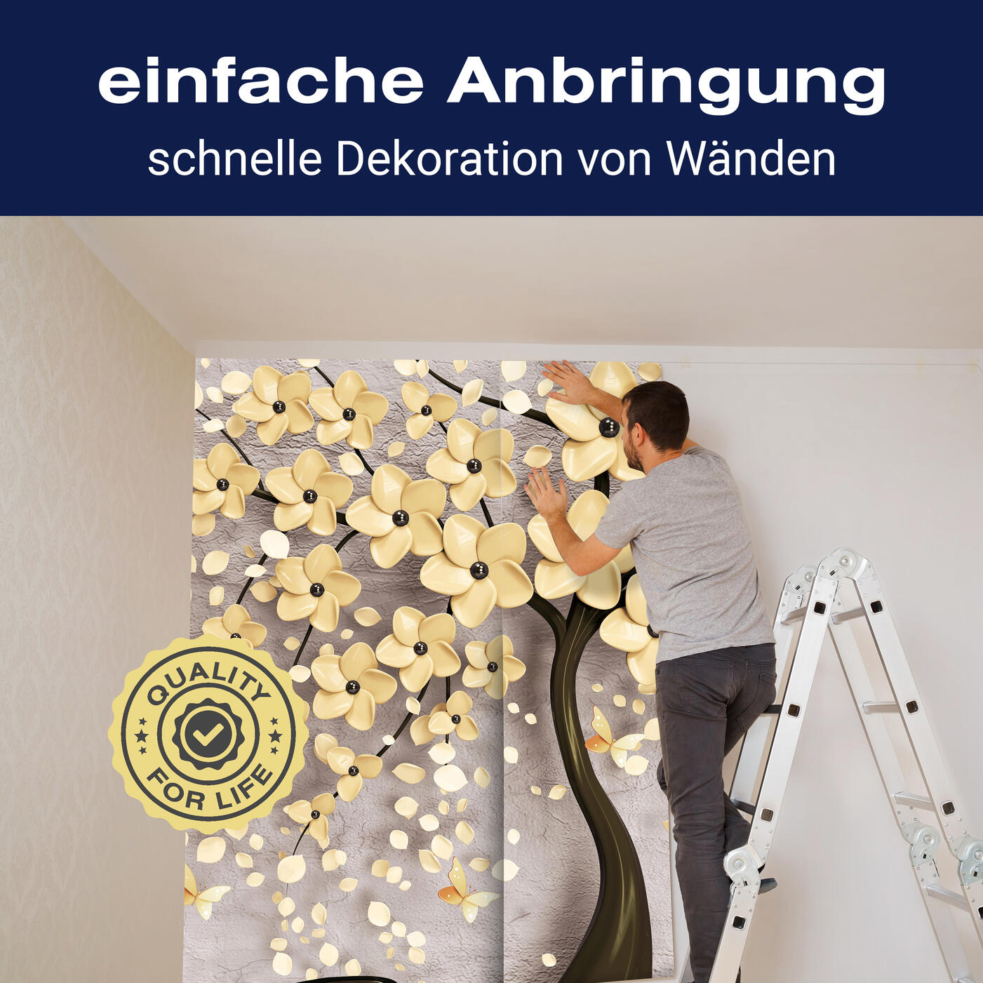 Träumst Du davon, Deine Wände in eine beeindruckende Kunstgalerie zu verwandeln? Mit unserer hochwertigen Fototapete Blütenbaum gold Reh M6788 ist es jetzt möglich! Jede Wand wird zu einer Leinwand Deiner Kreativität.