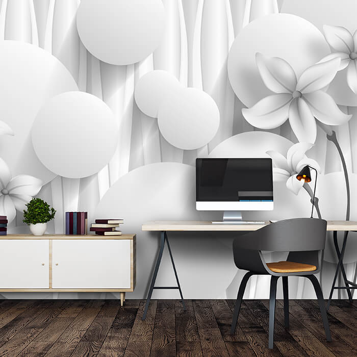 Fototapete Blumen 3D Kreise Effekt abstrakt grau M5343