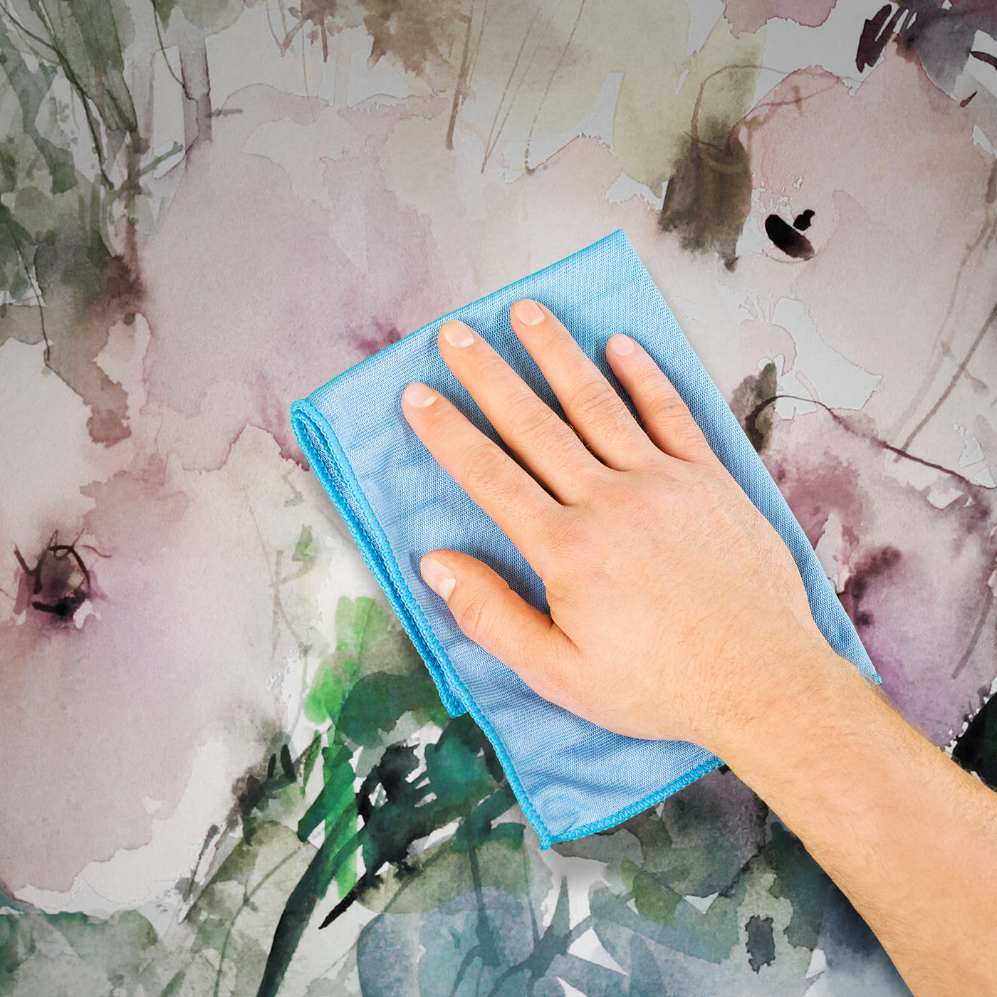 - Reinige eventuelle Verschmutzungen oder Kleberreste sofort mit einem feuchten Schwamm oder Tuch.