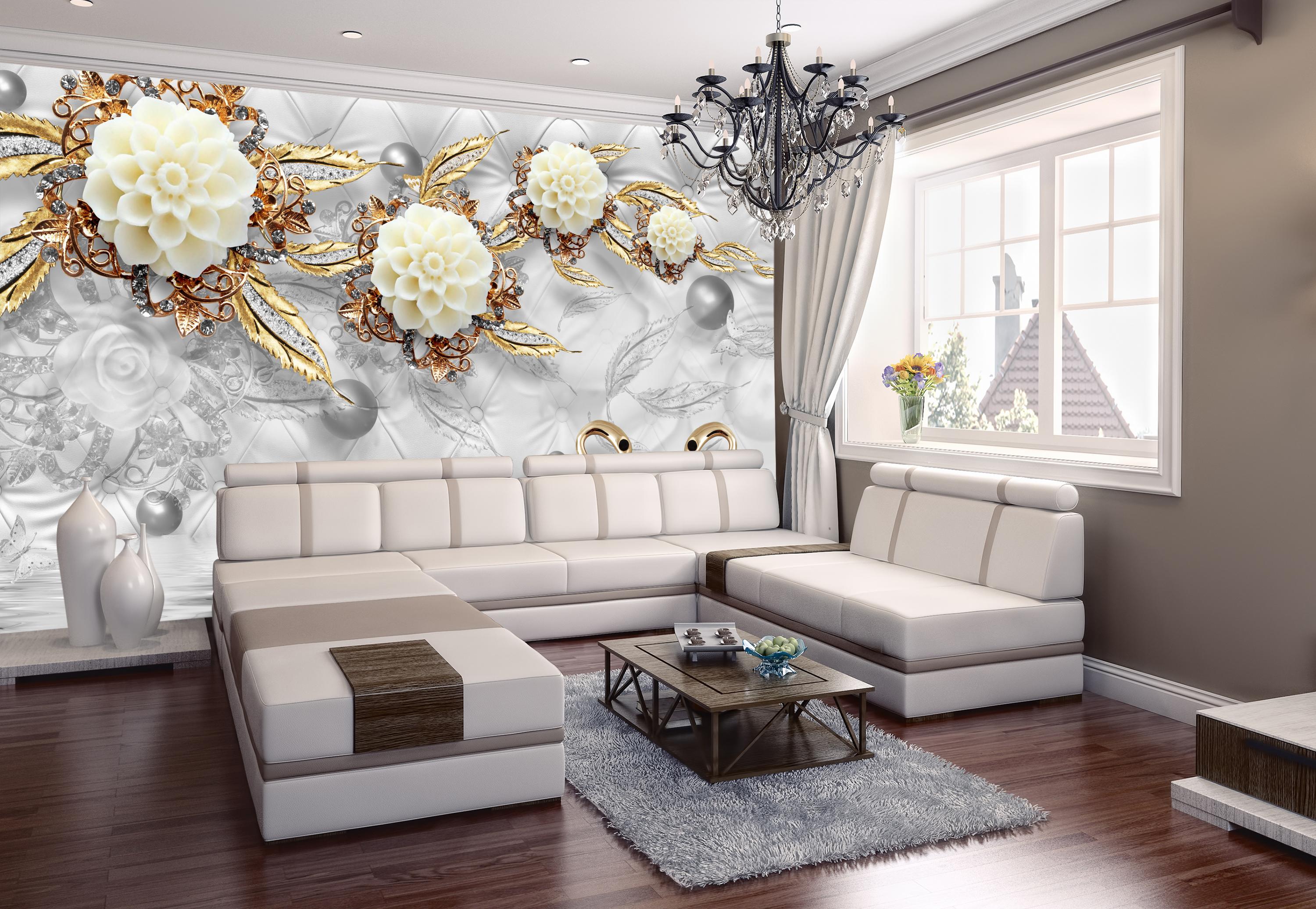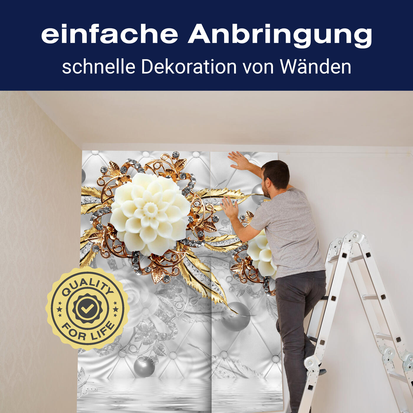 FOTOTAPETE Blumen Gold Diamanten Luxuriös Grau