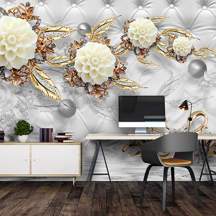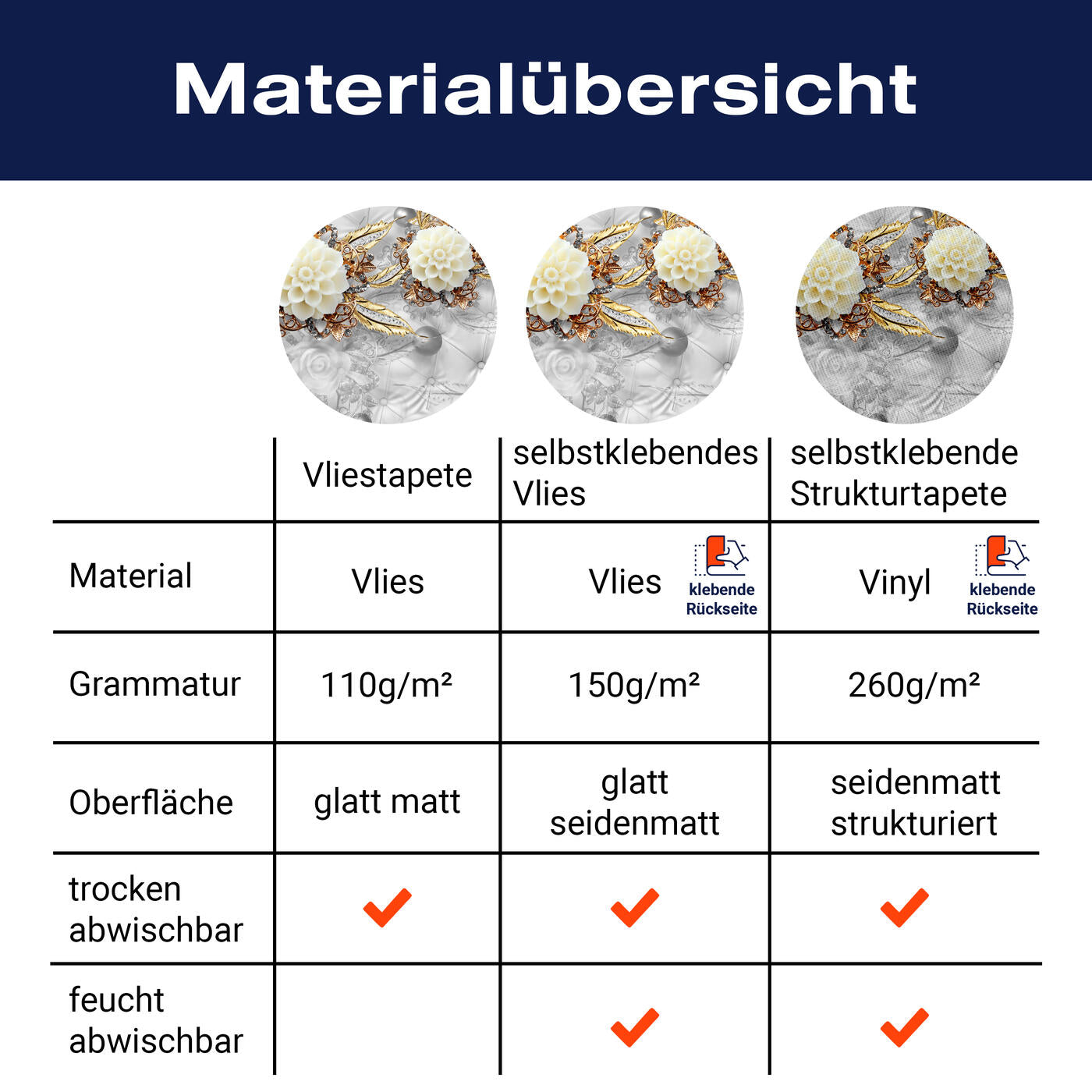 Träumst Du davon, Deine Wände in eine beeindruckende Kunstgalerie zu verwandeln? Mit unserer hochwertigen Fototapete Blumen Gold Diamanten Luxuriös Grau M1973 ist es jetzt möglich! Jede Wand wird zu einer Leinwand Deiner Kreativität.