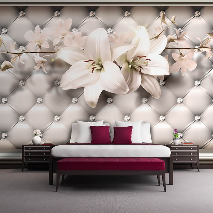 Fototapete Blumen Lilien Diamanten Polster Leder M4628
