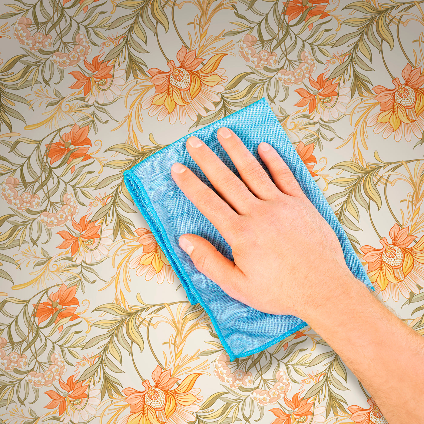 - Reinige eventuelle Verschmutzungen oder Kleberreste sofort mit einem feuchten Schwamm oder Tuch.