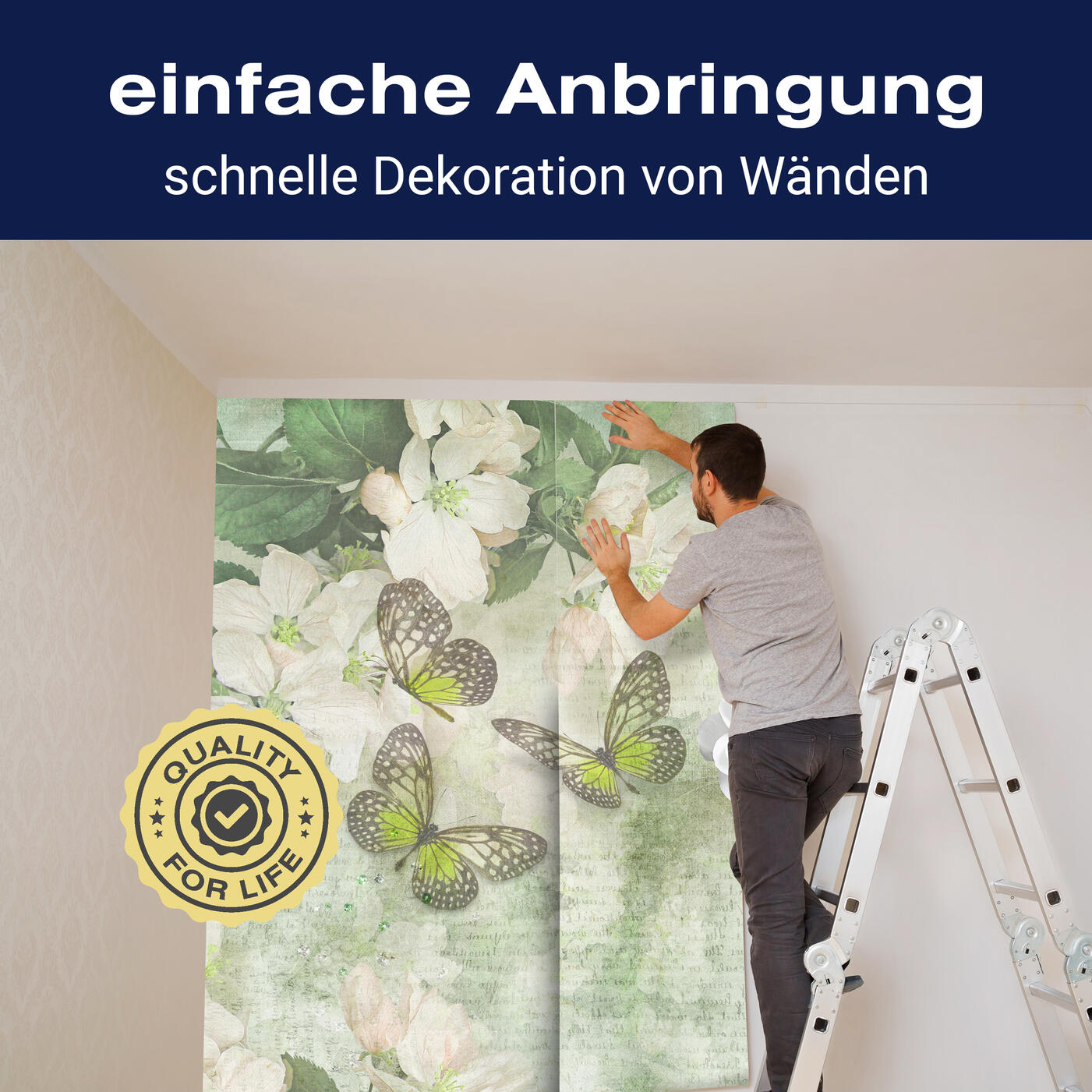 Träumst Du davon, Deine Wände in eine beeindruckende Kunstgalerie zu verwandeln? Mit unserer hochwertigen Fototapete Blumen Schmetterlinge hell grün M1754 ist es jetzt möglich! Jede Wand wird zu einer Leinwand Deiner Kreativität.
