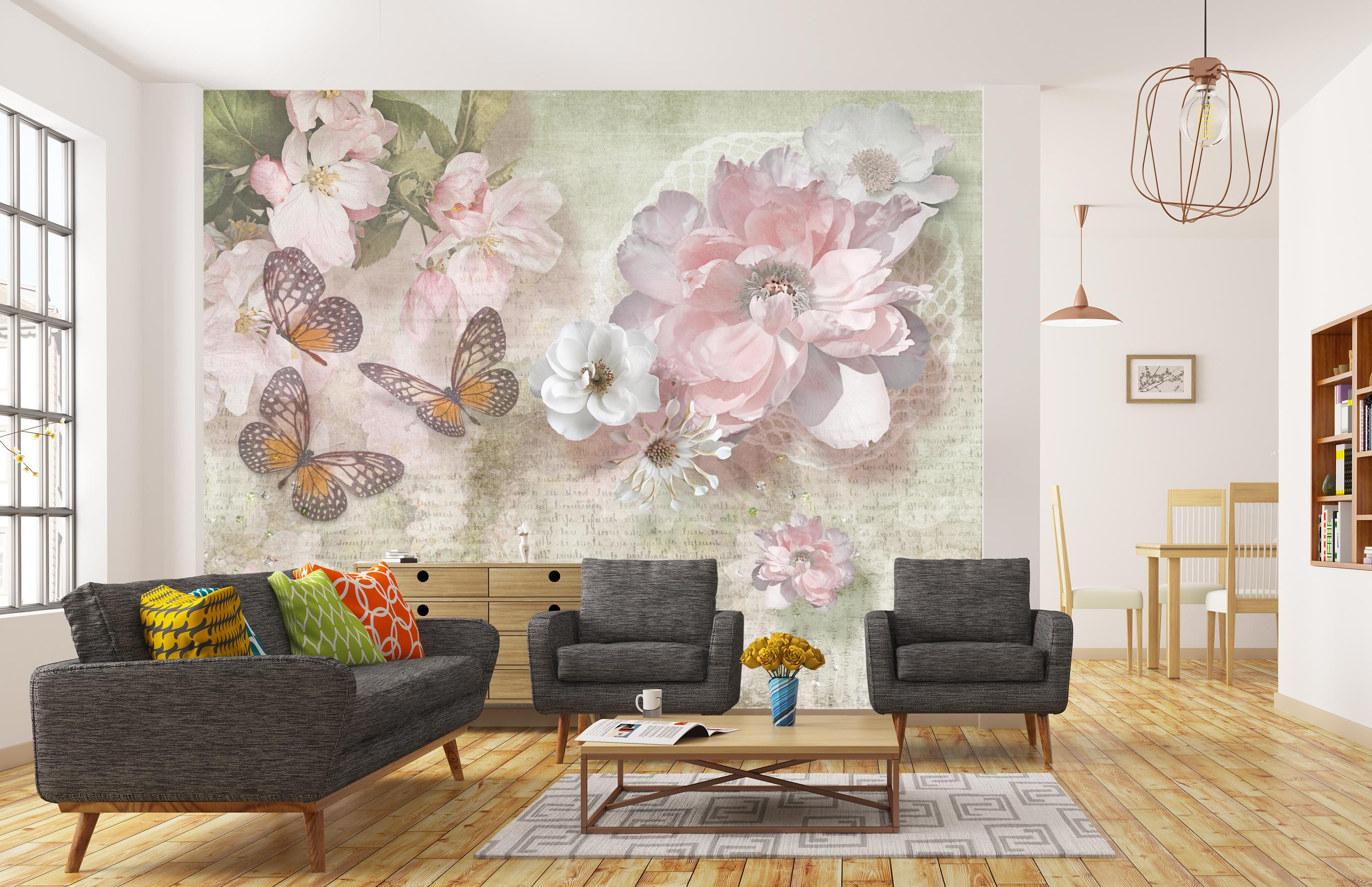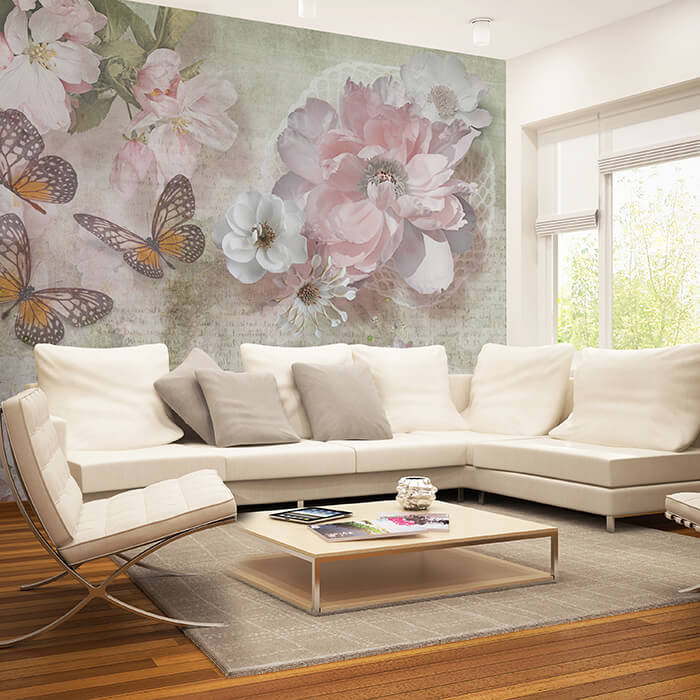FOTOTAPETE Blumen Schmetterlinge Retro