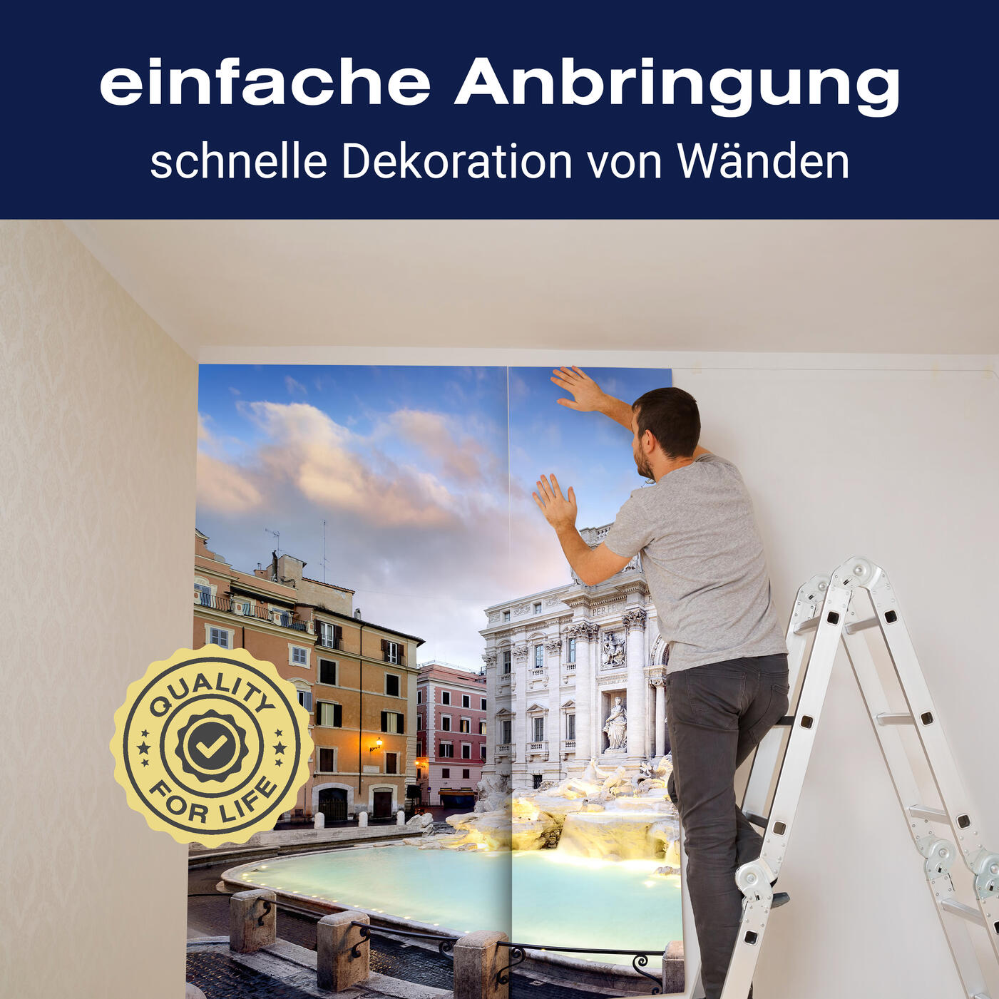 Unsere Fototapeten sind so konzipiert, dass sie ohne großen Aufwand angebracht werden können. Ob selbstklebend oder traditionell, die Anbringung ist einfach und schnell.
