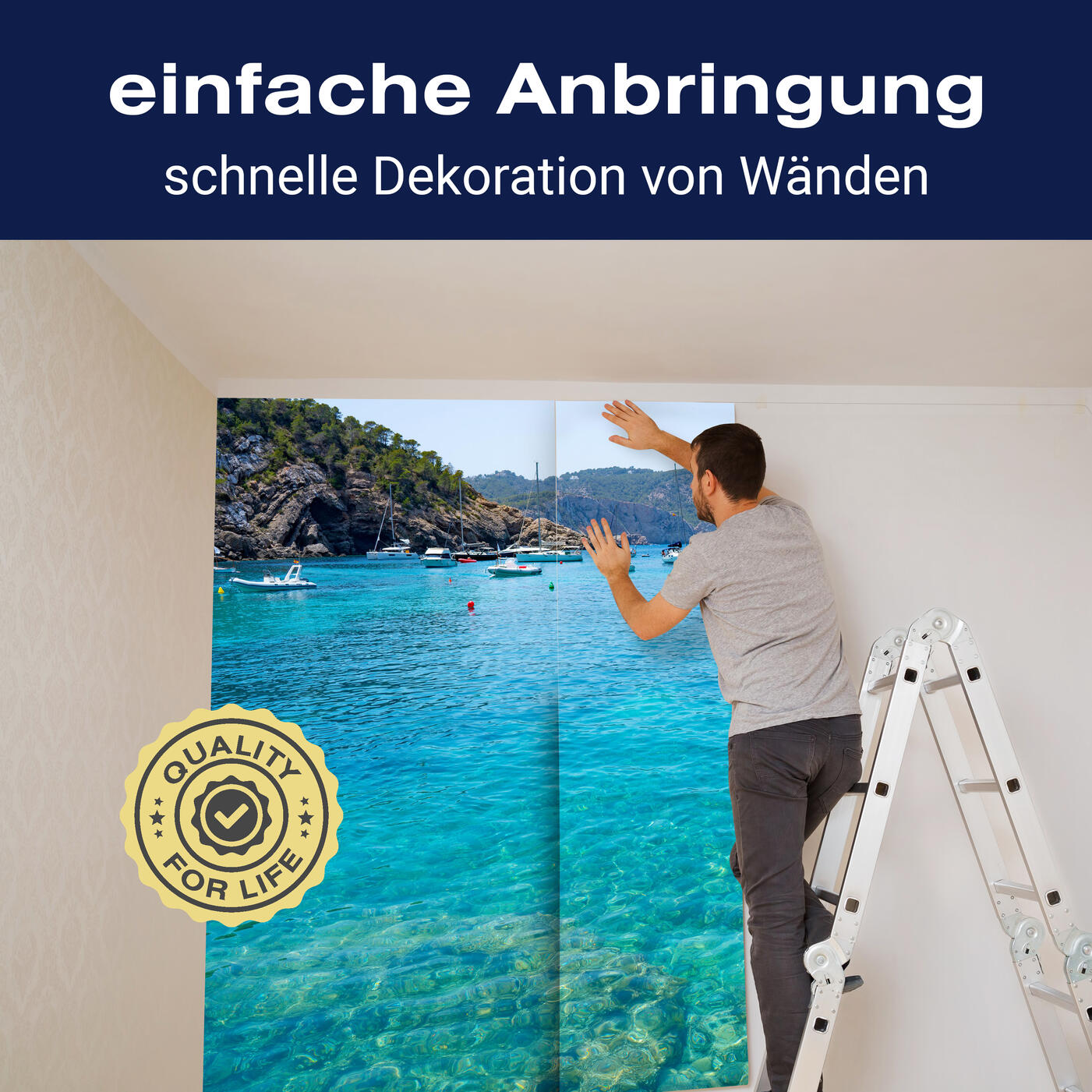 Unsere Fototapeten sind so konzipiert, dass sie ohne großen Aufwand angebracht werden können. Ob selbstklebend oder traditionell, die Anbringung ist einfach und schnell.