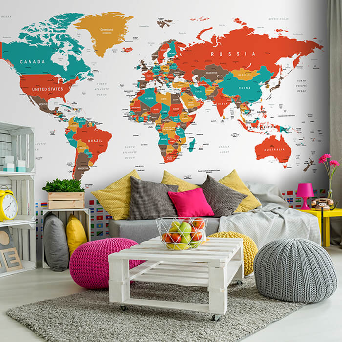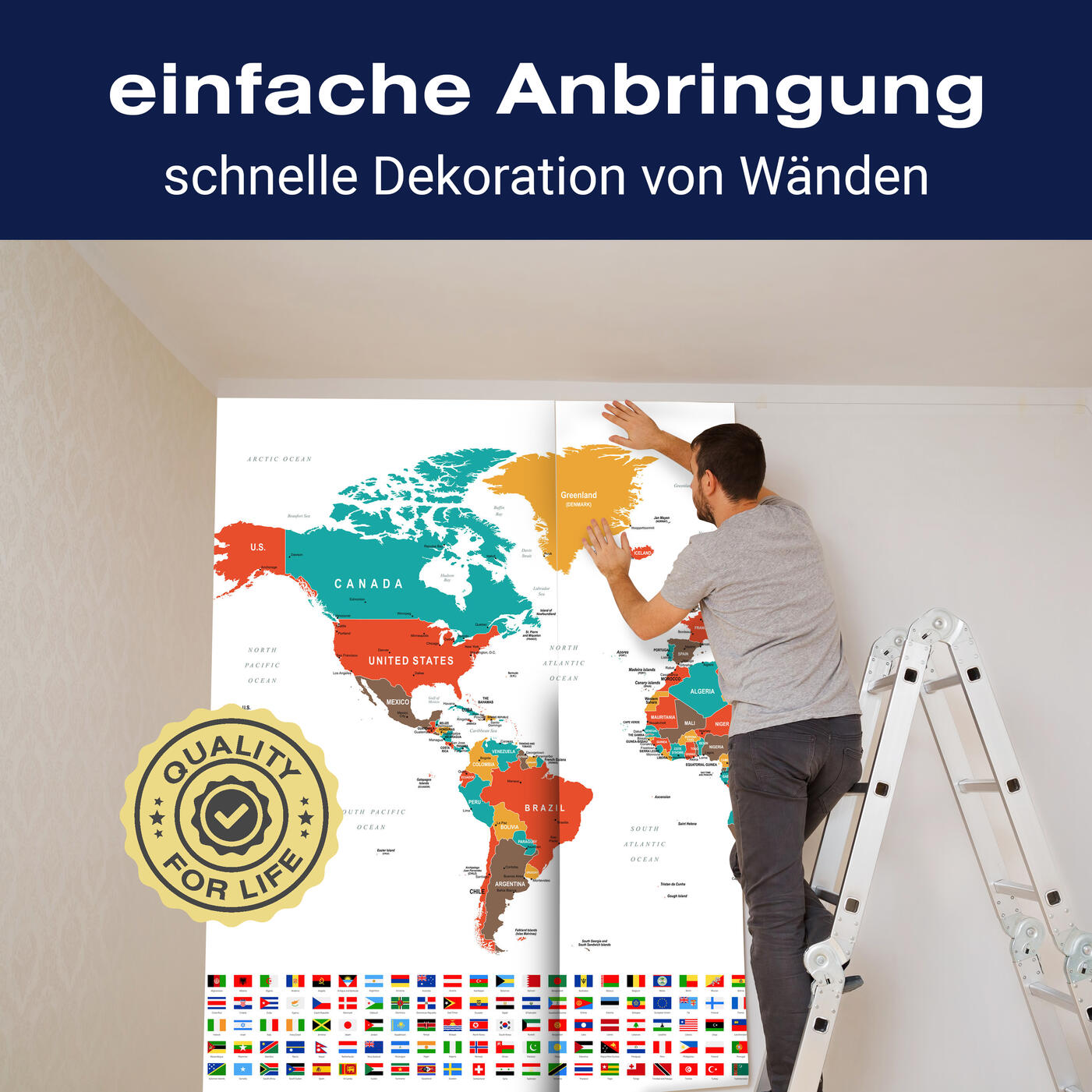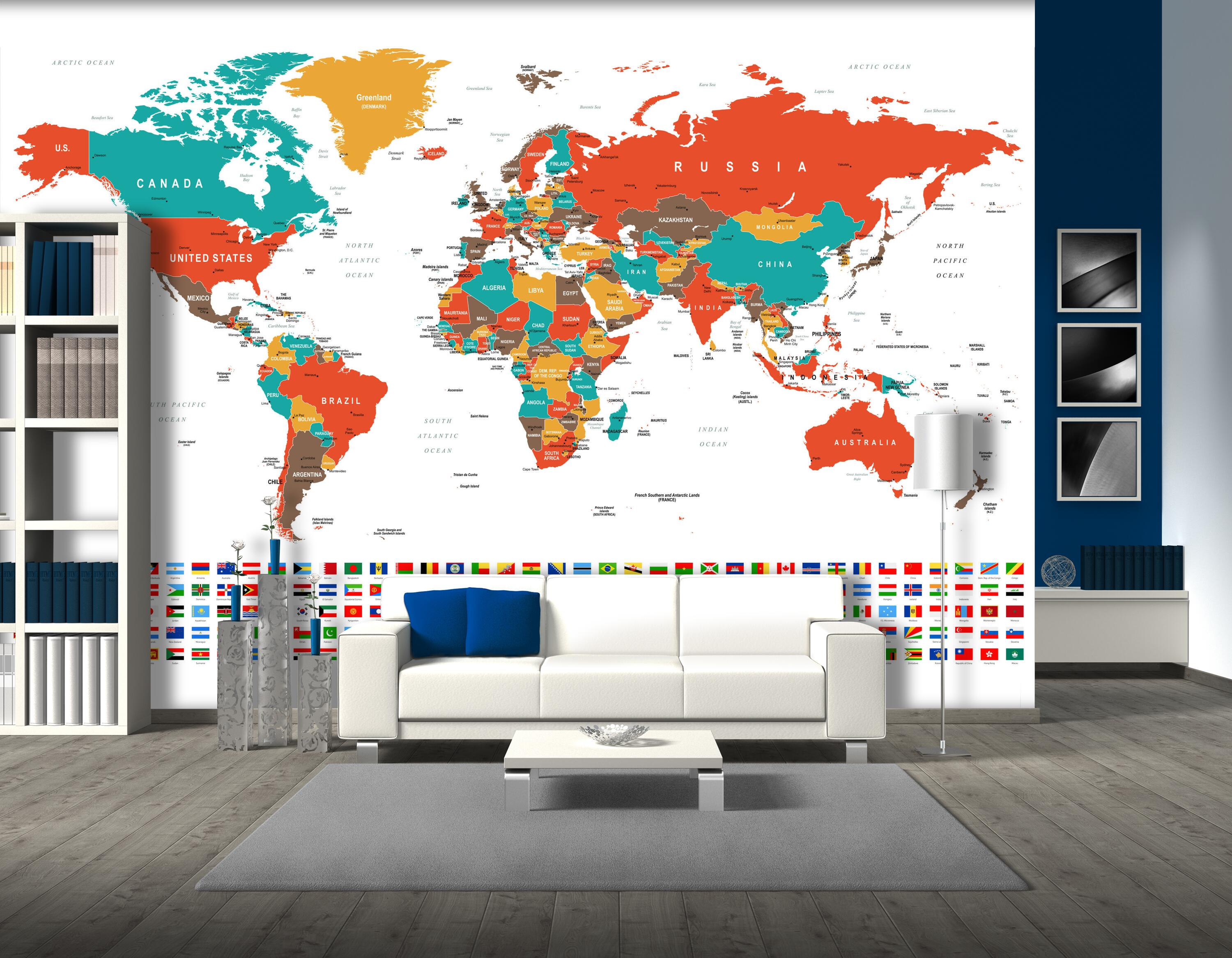 Träumst Du davon, Deine Wände in eine beeindruckende Kunstgalerie zu verwandeln? Mit unserer hochwertigen Fototapete bunte Weltkarte Flaggen M6651 ist es jetzt möglich! Jede Wand wird zu einer Leinwand Deiner Kreativität.
