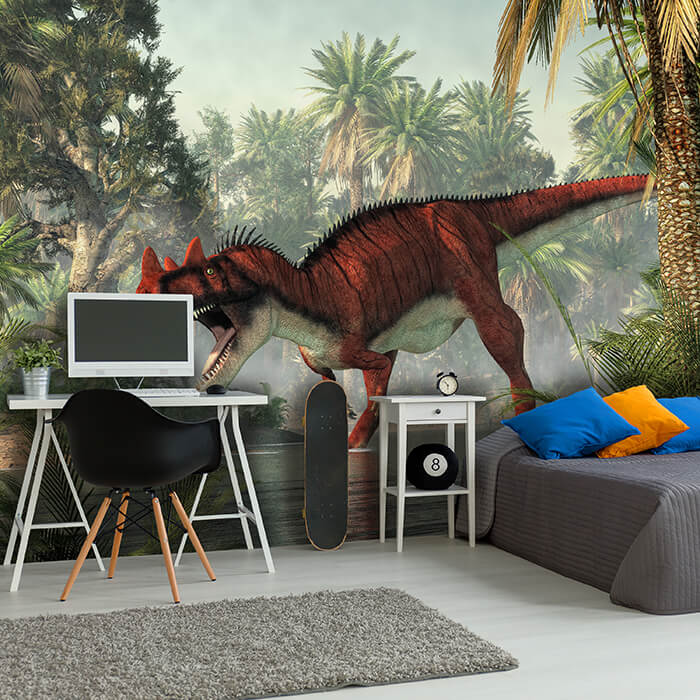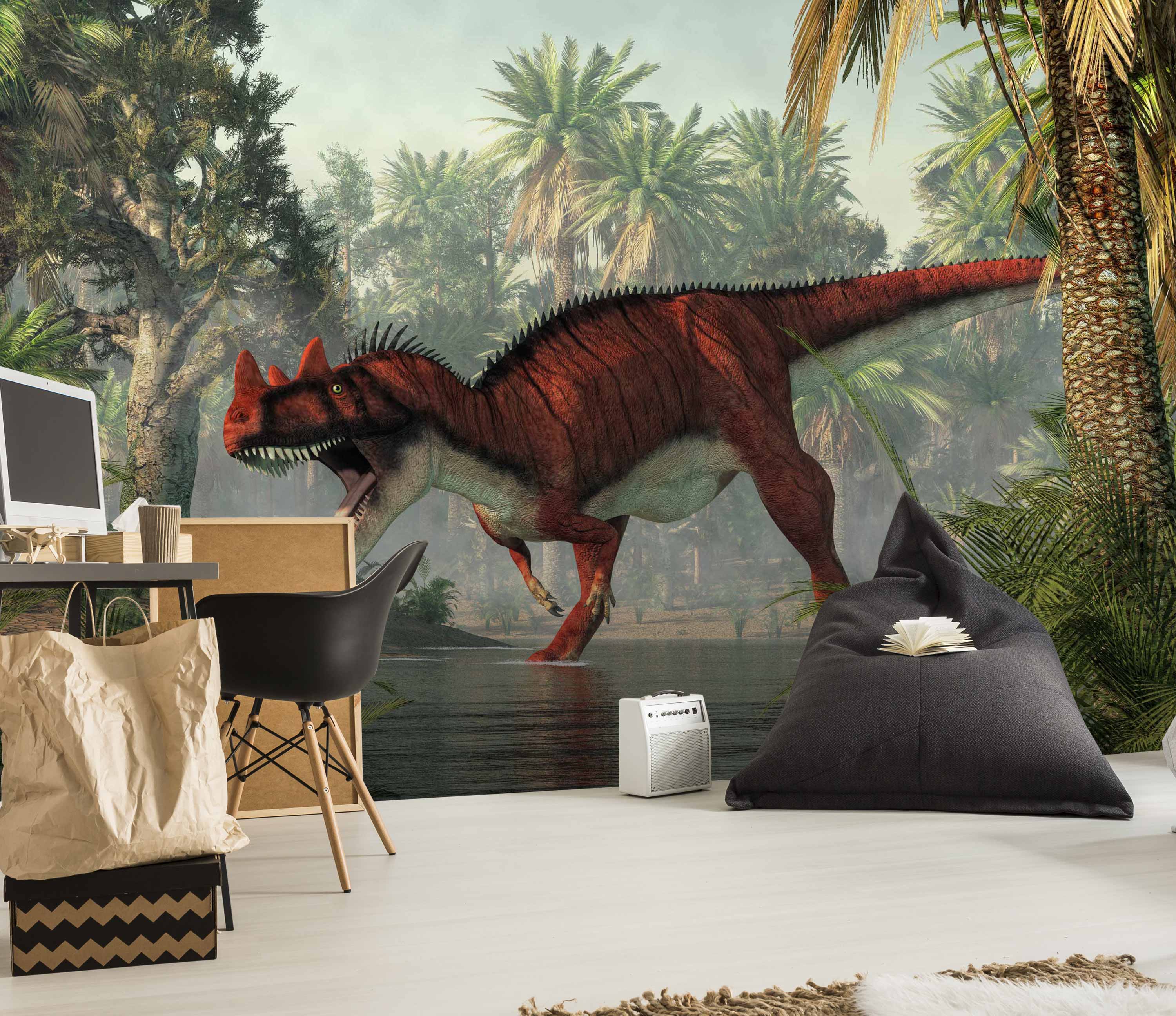 Träumst Du davon, Deine Wände in eine beeindruckende Kunstgalerie zu verwandeln? Mit unserer hochwertigen Fototapete Ceratosaurus im Wasser mit Palmen M6022 ist es jetzt möglich! Jede Wand wird zu einer Leinwand Deiner Kreativität.