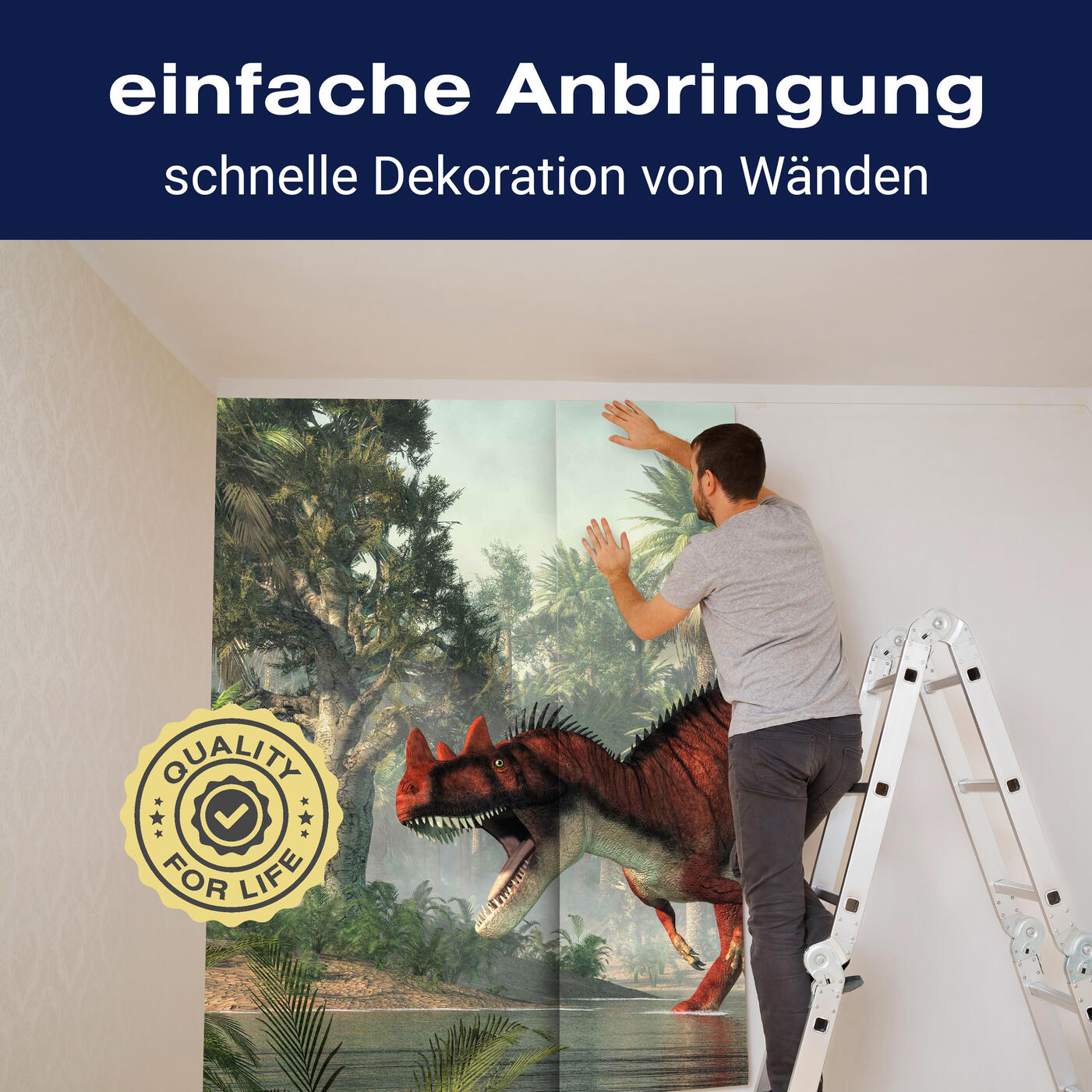 FOTOTAPETE Ceratosaurus im Wasser mit Palmen