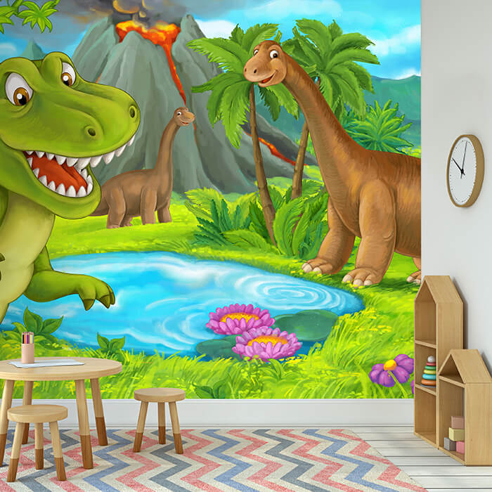 FOTOTAPETE Dino Dinosaurier Berg Teich