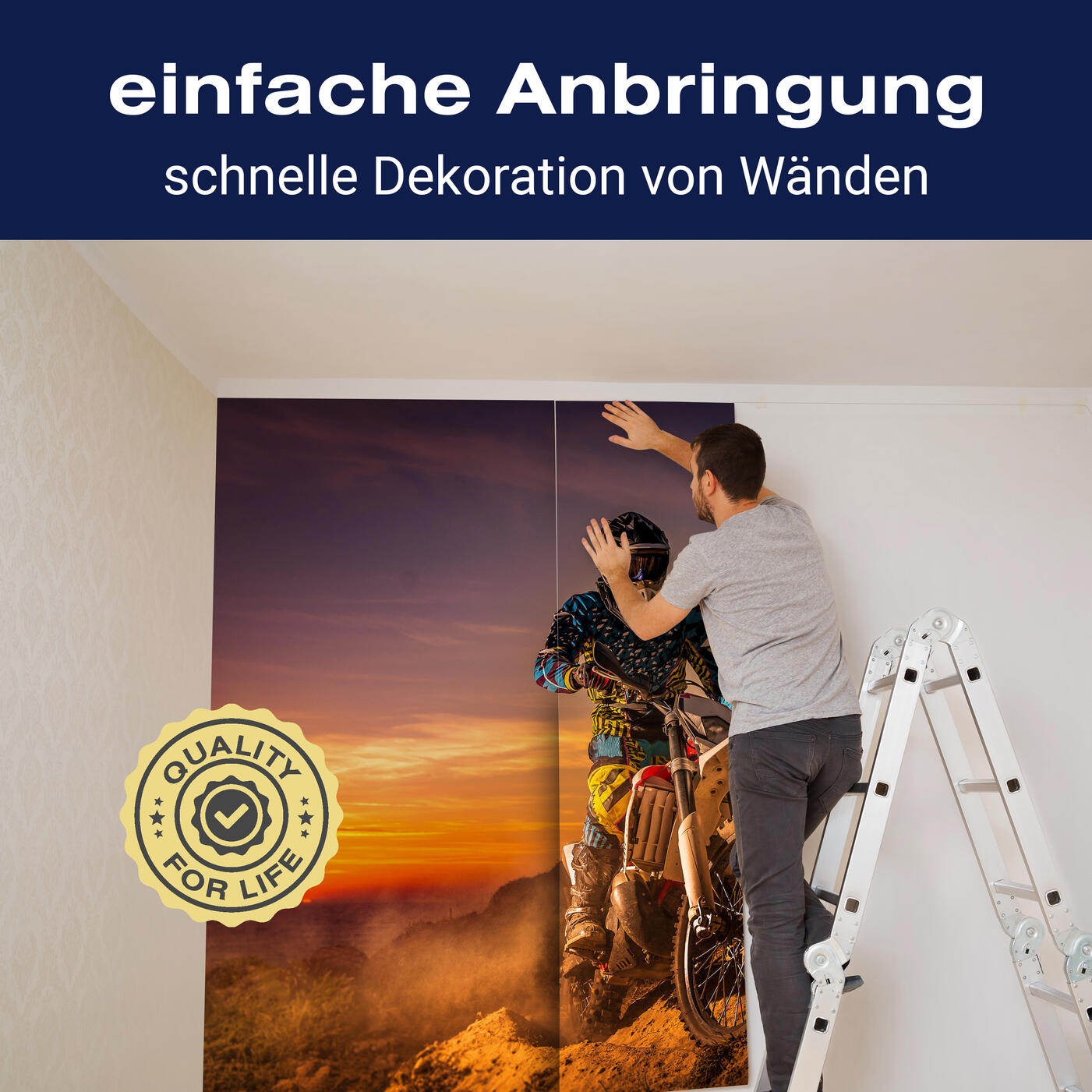 Unsere Fototapeten sind so konzipiert, dass sie ohne großen Aufwand angebracht werden können. Ob selbstklebend oder traditionell, die Anbringung ist einfach und schnell.