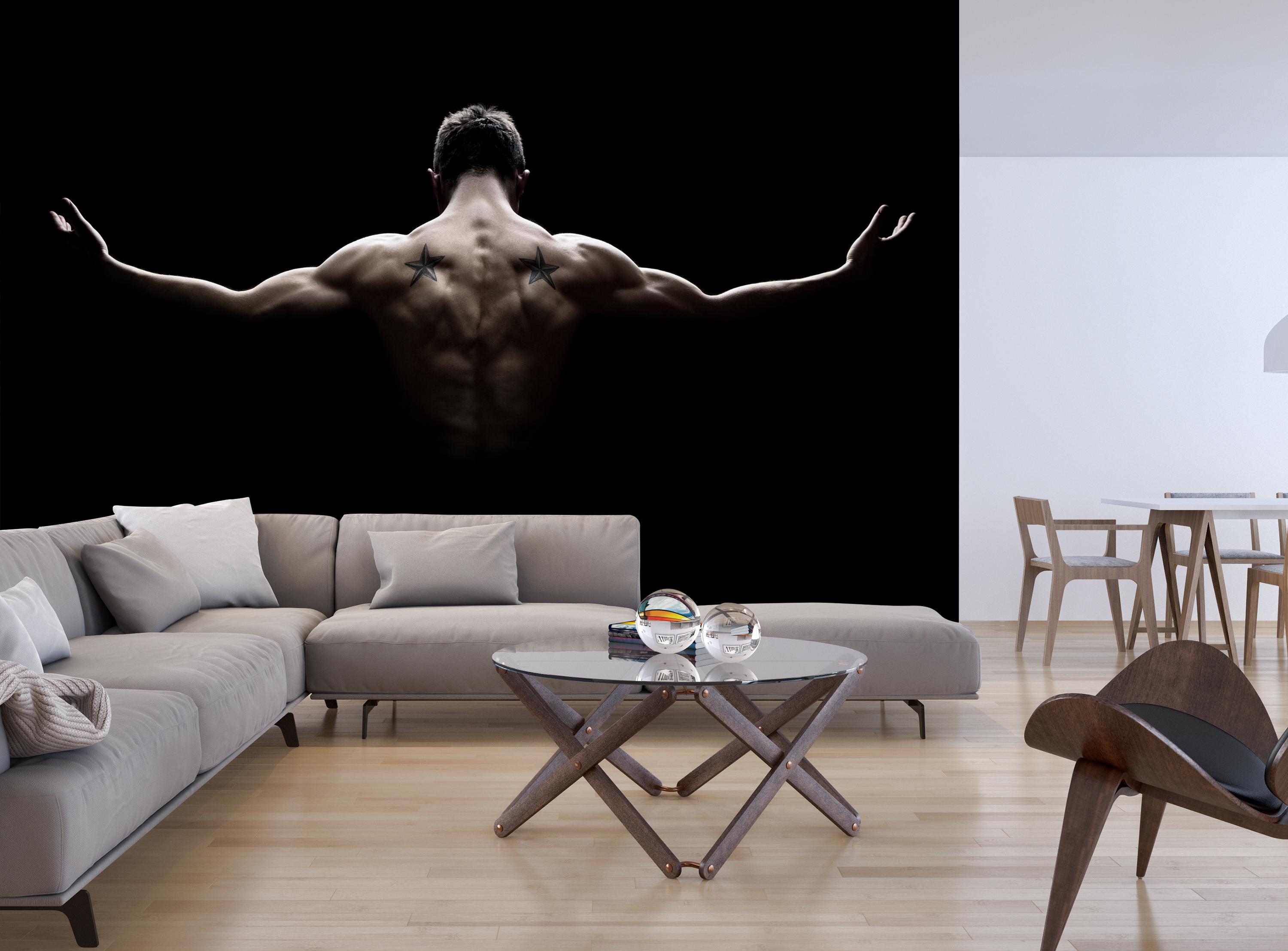 Träumst Du davon, Deine Wände in eine beeindruckende Kunstgalerie zu verwandeln? Mit unserer hochwertigen Fototapete Fitness muskulöser Mann Schwarz M5688 ist es jetzt möglich! Jede Wand wird zu einer Leinwand Deiner Kreativität.