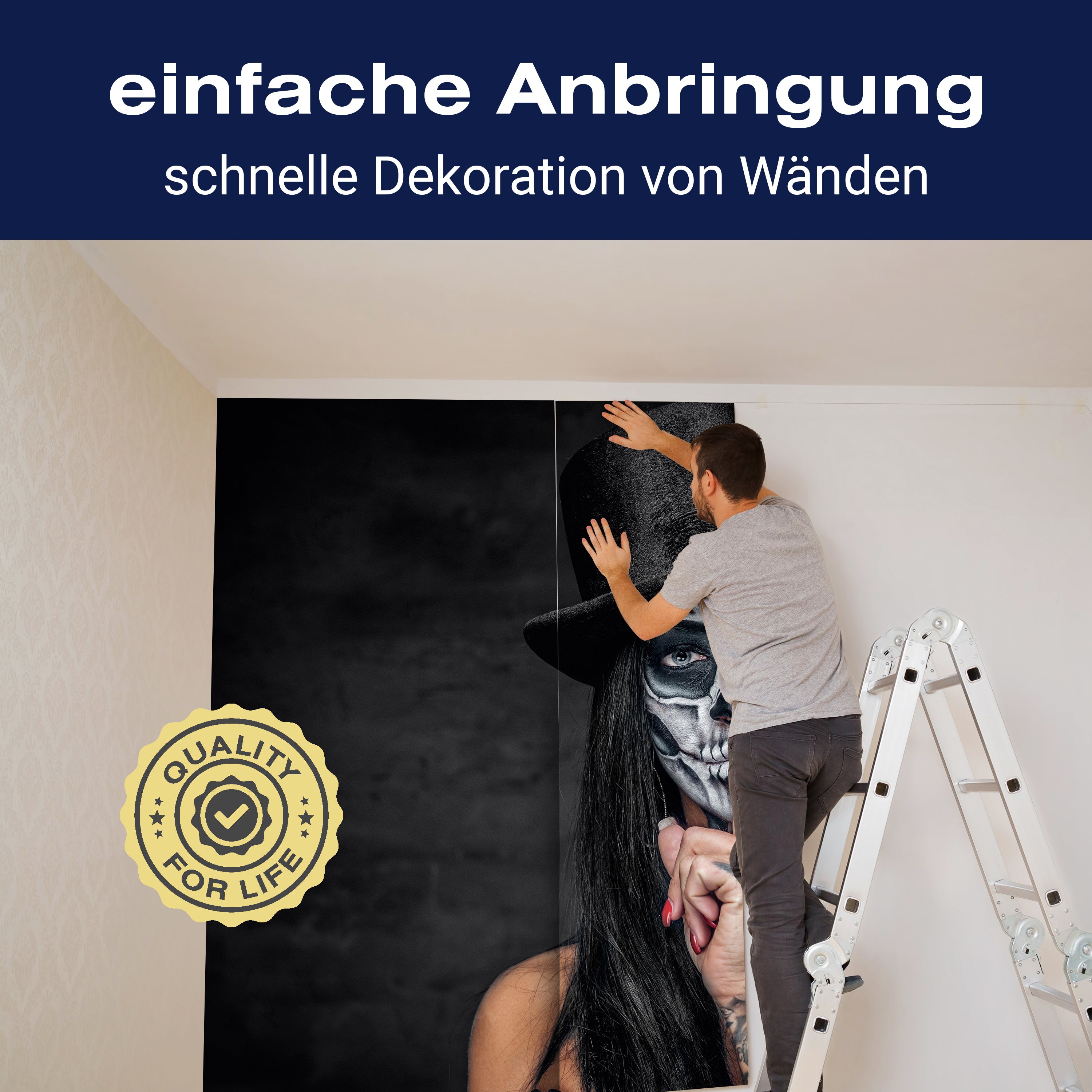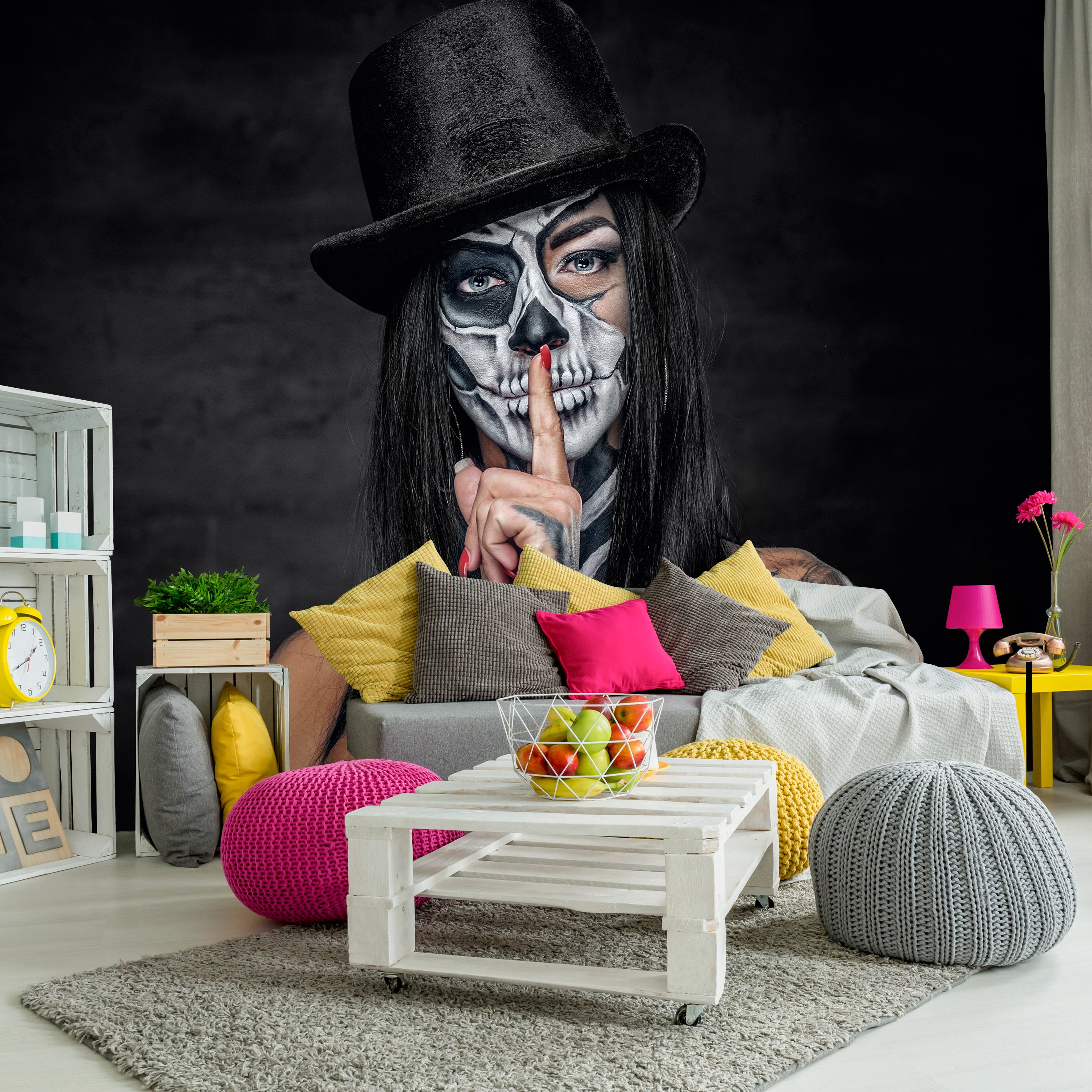 Träumst Du davon, Deine Wände in eine beeindruckende Kunstgalerie zu verwandeln? Mit unserer hochwertigen Fototapete Frau Gesicht Totenkopf M6509 ist es jetzt möglich! Jede Wand wird zu einer Leinwand Deiner Kreativität.