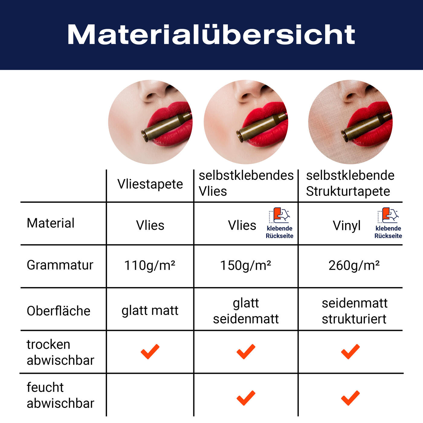 - Selbstklebendes Vlies 150g/m²: Einfach anzubringen, perfekt für Mietwohnungen.