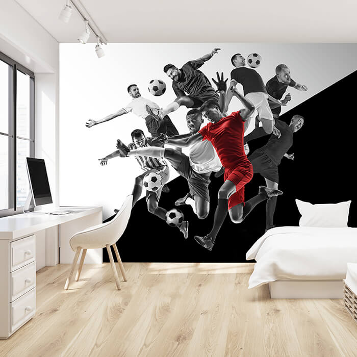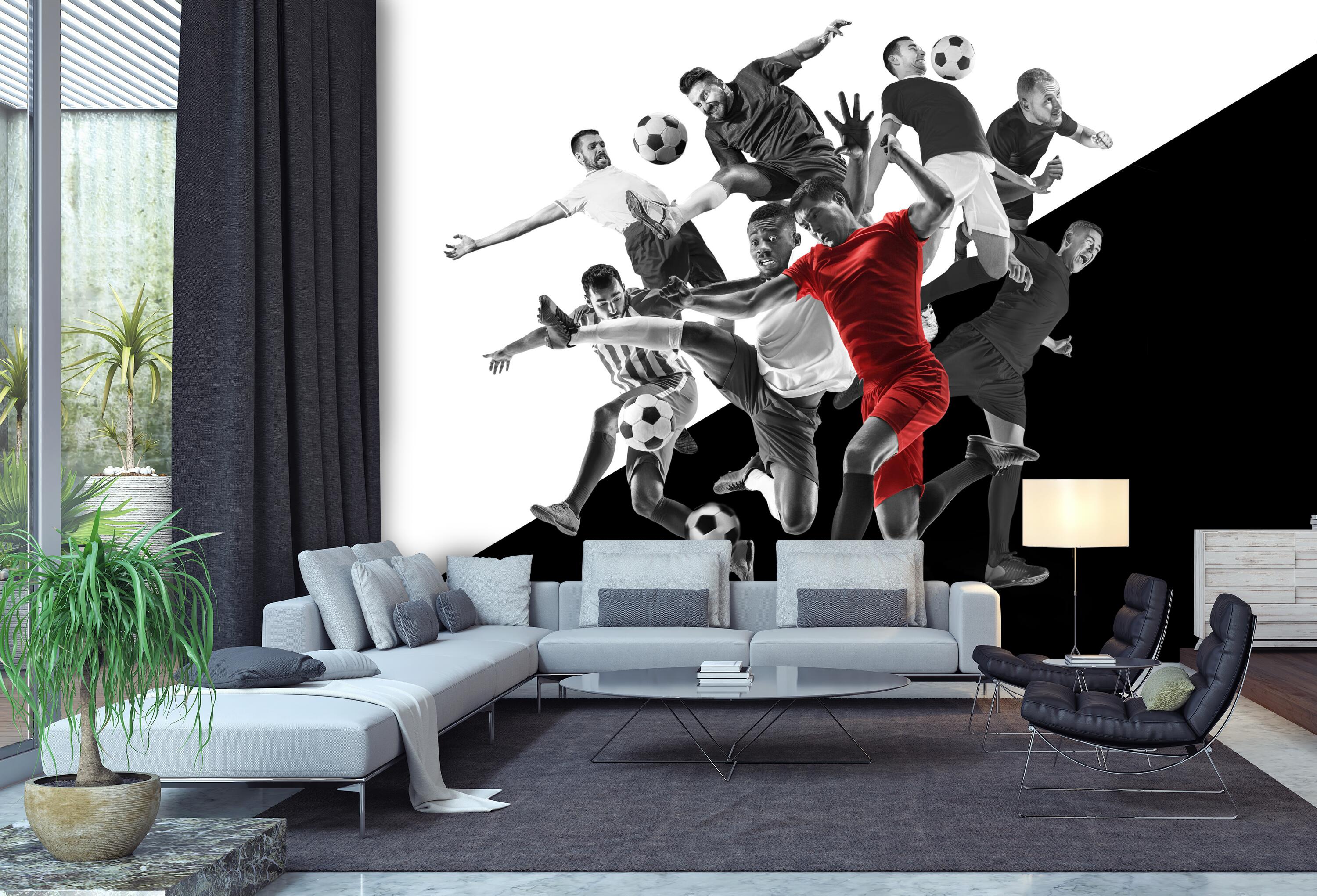 Träumst Du davon, Deine Wände in eine beeindruckende Kunstgalerie zu verwandeln? Mit unserer hochwertigen Fototapete Fußballspieler in Schwarz Weiß und Rot M6038 ist es jetzt möglich! Jede Wand wird zu einer Leinwand Deiner Kreativität.