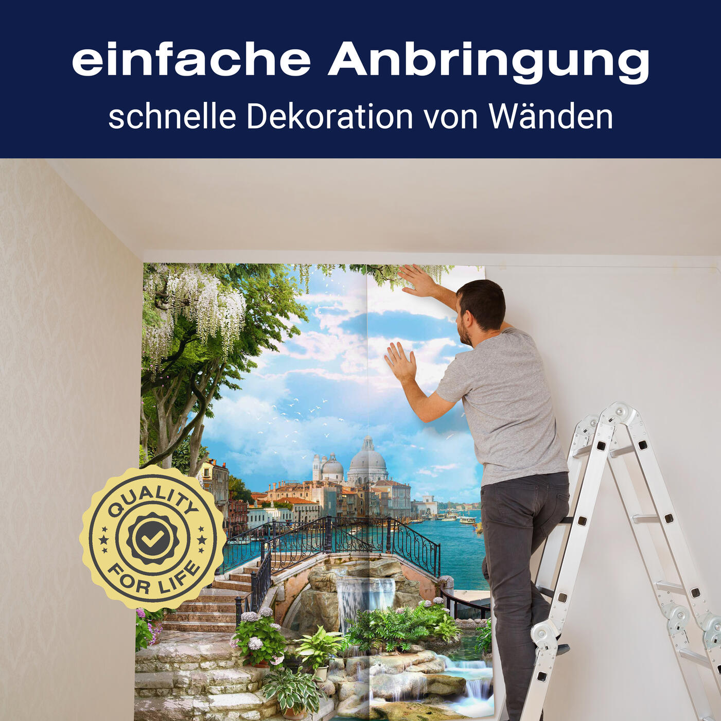 Bei der Anbringung einer Fototapete ist es wichtig, die Herstelleranweisungen zu befolgen, um sicherzustellen, dass die Tapete korrekt positioniert und glatt an der Wand angebracht wird. In der Regel erfolgt die Montage ähnlich wie bei herkömmlichen Tapeten, wobei der Klebstoff auf die Tapete aufgetragen wird und diese dann auf die vorbereitete Wand aufgebracht wird.