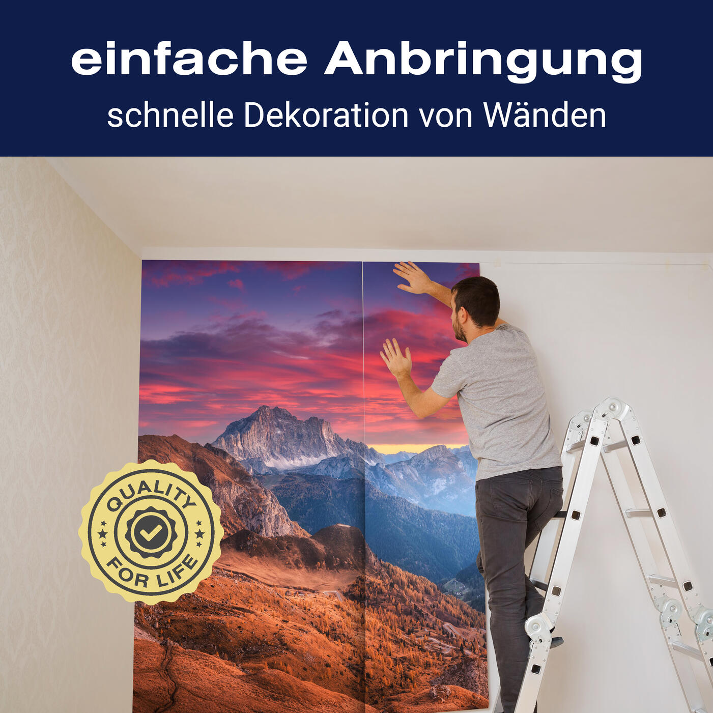 Unsere Fototapeten sind so konzipiert, dass sie ohne großen Aufwand angebracht werden können. Ob selbstklebend oder traditionell, die Anbringung ist einfach und schnell.