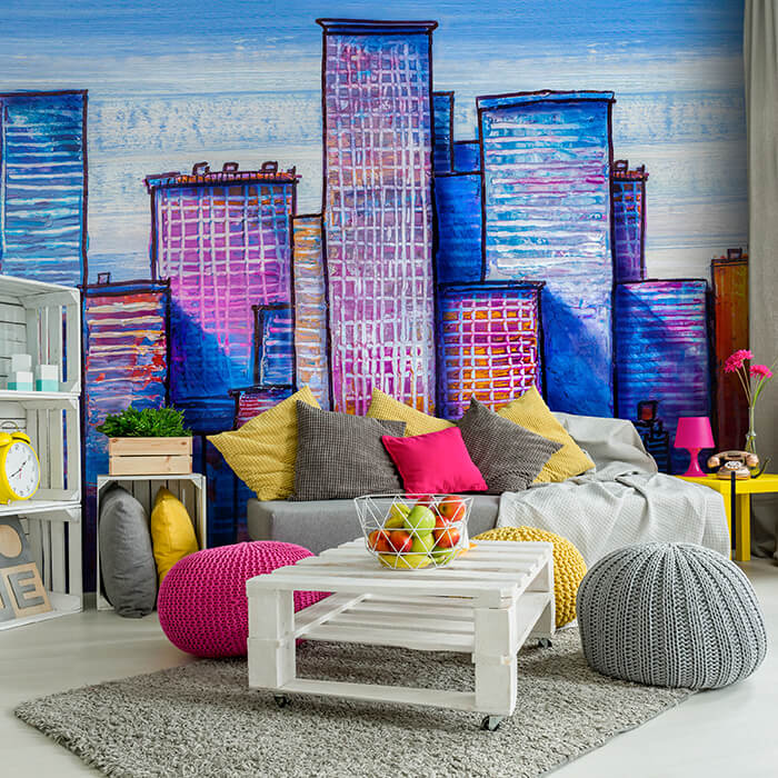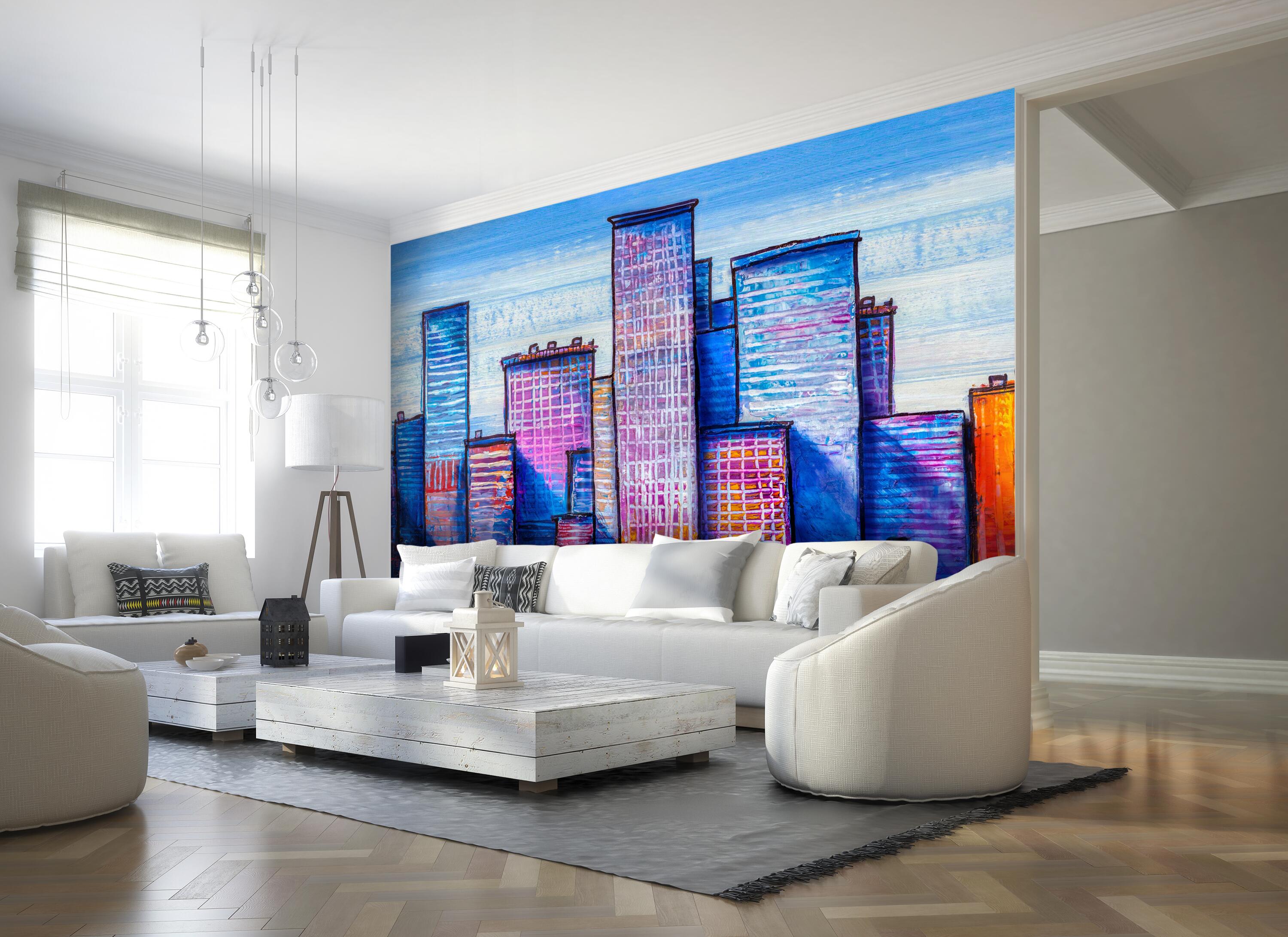 Träumst Du davon, Deine Wände in eine beeindruckende Kunstgalerie zu verwandeln? Mit unserer hochwertigen Fototapete Gemälde blaue Hochhäuser Stadt M5999 ist es jetzt möglich! Jede Wand wird zu einer Leinwand Deiner Kreativität.