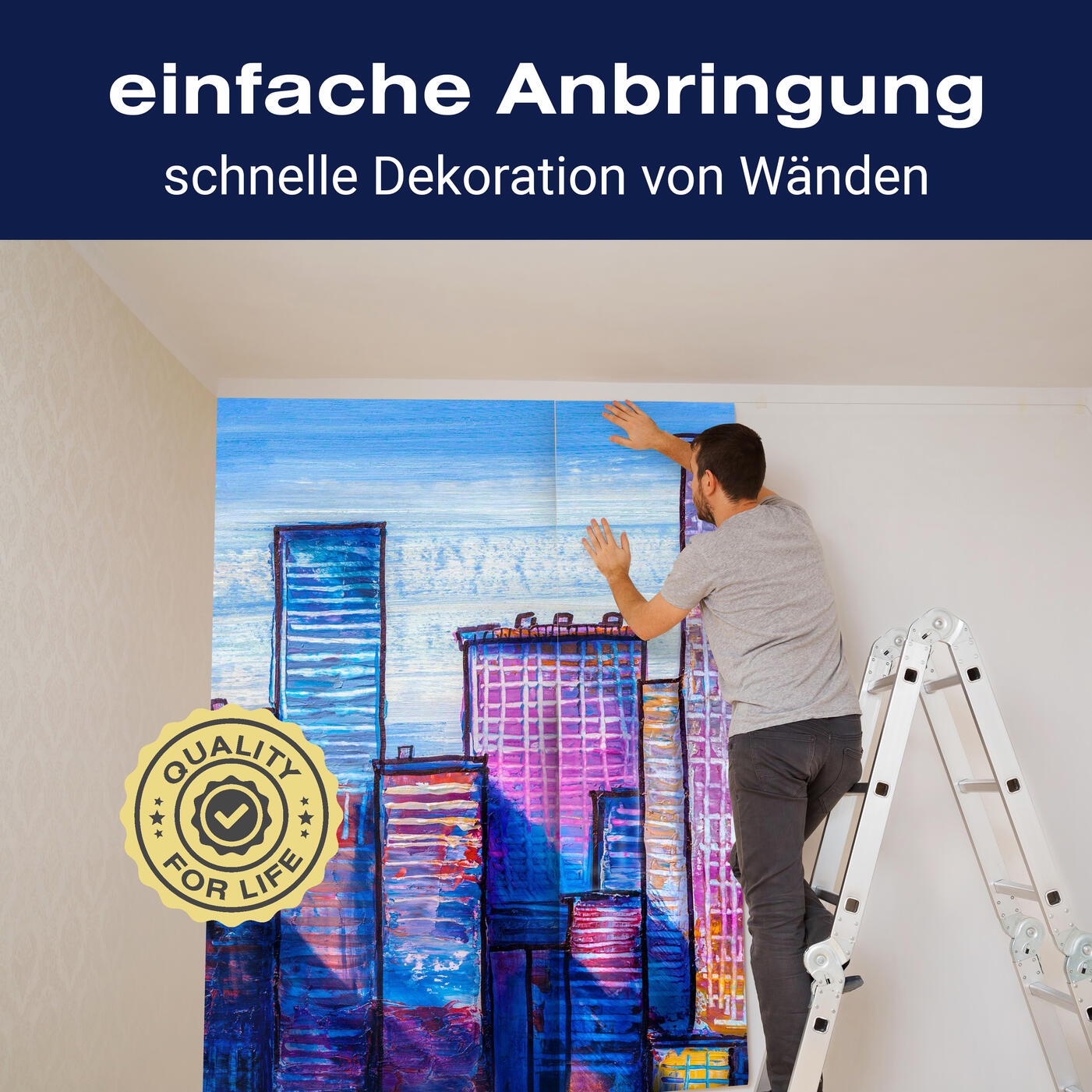 Unsere Fototapeten sind so konzipiert, dass sie ohne großen Aufwand angebracht werden können. Ob selbstklebend oder traditionell, die Anbringung ist einfach und schnell.