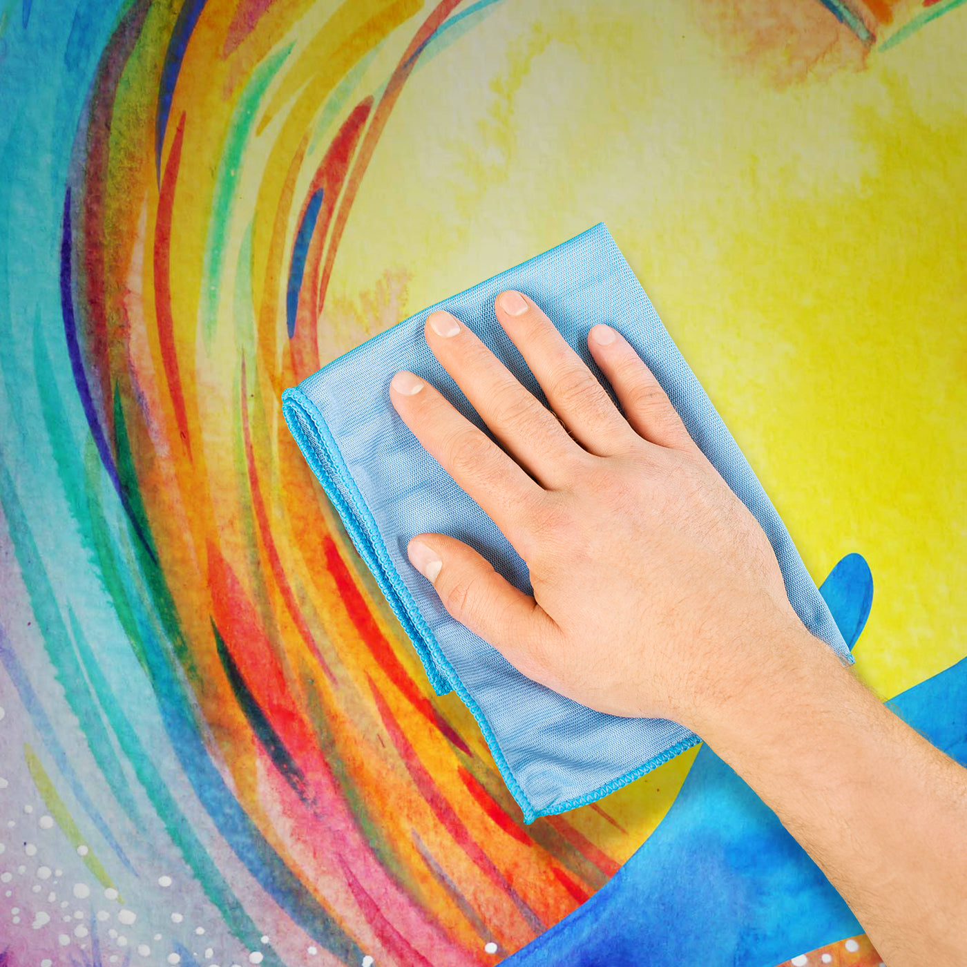 - Reinige eventuelle Verschmutzungen oder Kleberreste sofort mit einem feuchten Schwamm oder Tuch.